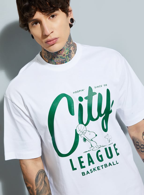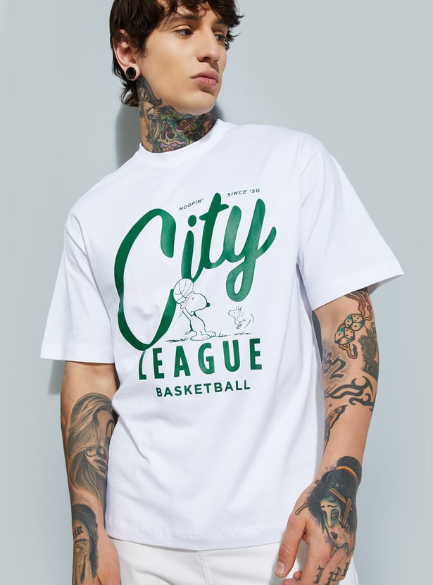 Make a statement with this printed oversized T-shirt, designed for maximum comfort and effortless style. Featuring a crew neck and half sleeves, it brings a relaxed, trend-forward vibe to your everyday look.