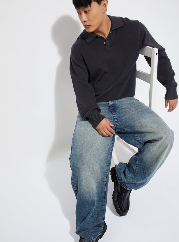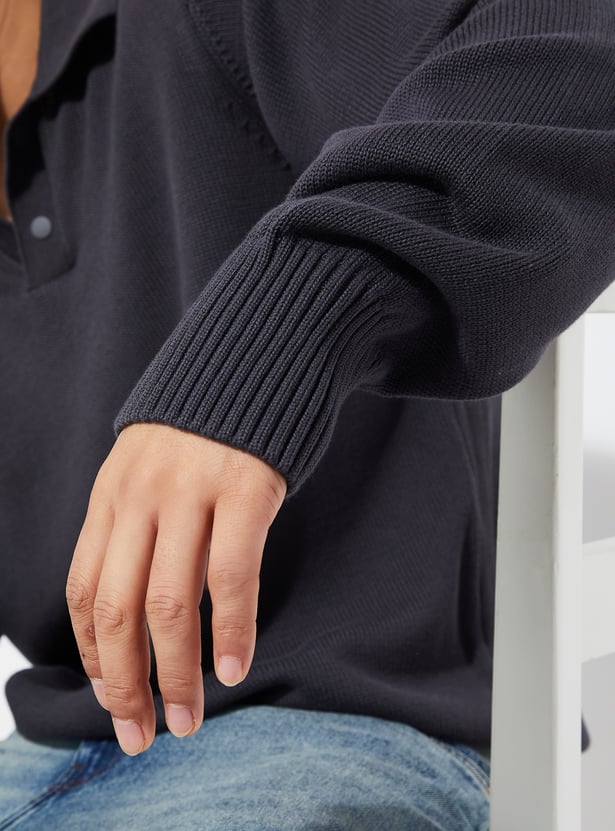 Stay cozy and stylish with this textured sweater featuring a polo collar, half button placket, and full sleeves. The classic design offers a refined look with added comfort.