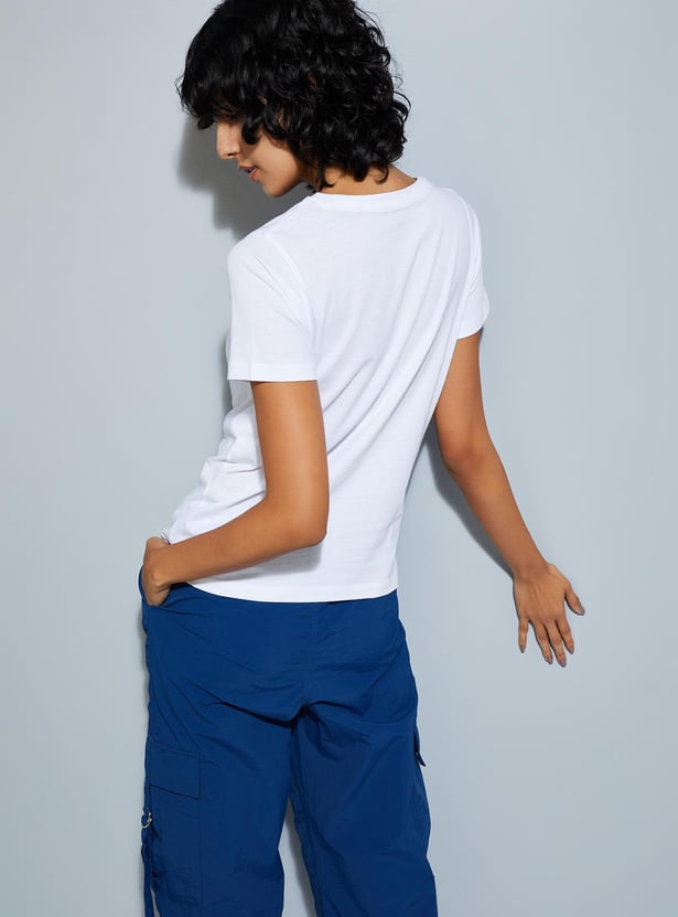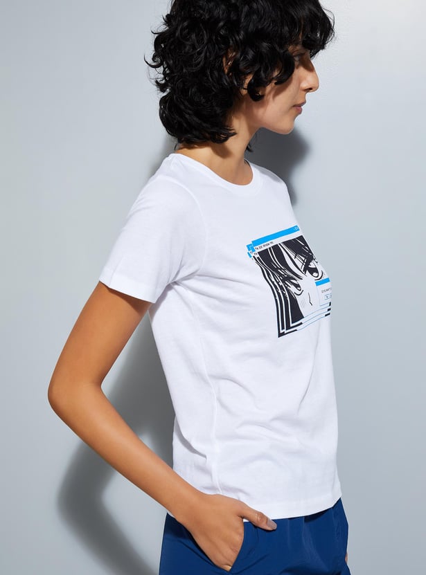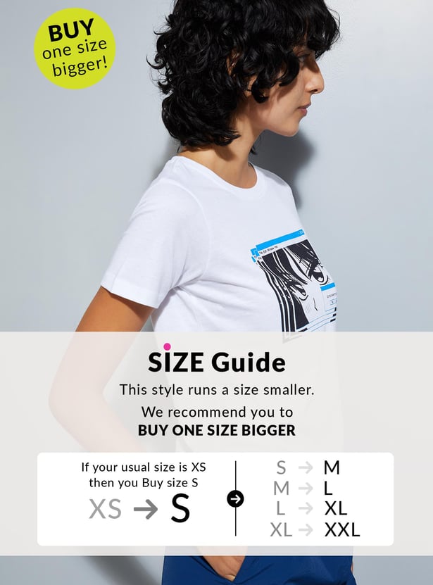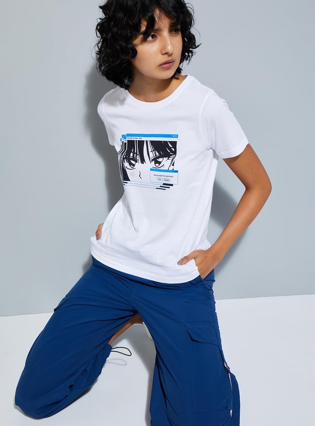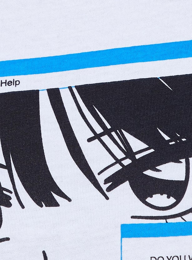 Level up your street style with this anime-printed tee. Featuring a round neck and half sleeves, it's sure to make a statement and showcase your swagger with confidence.