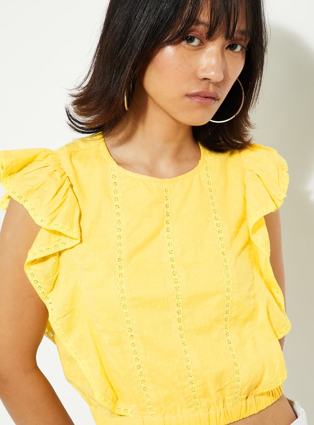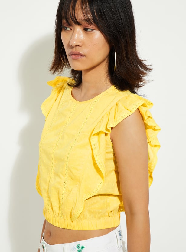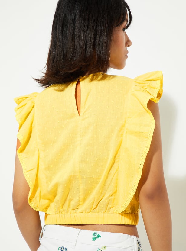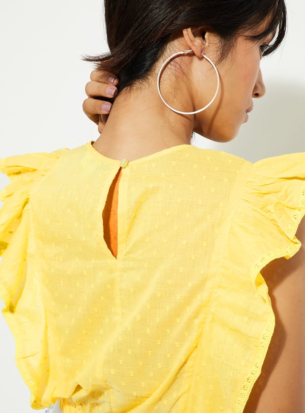 URB_N Women Dobby Woven Ruffle Top