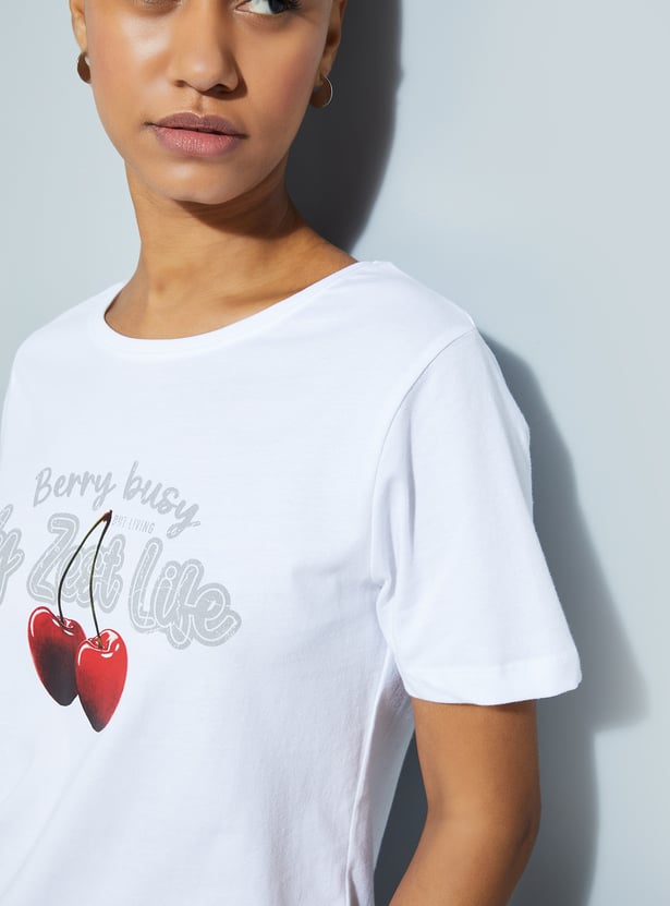 Get that laid-back urban vibe dialled in with this tee featuring a standout graphic print on the front, sleek half sleeves and a round neckline for a modern twist.