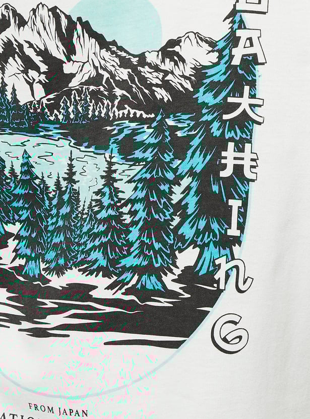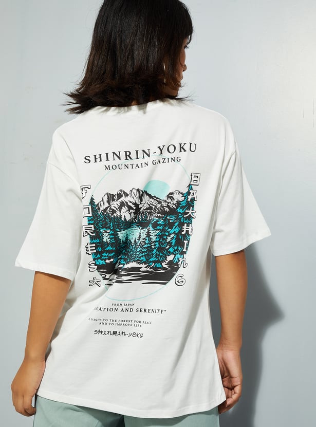 Get that urban edge with this tee featuring a bold oversized graphic at the back, half sleeves and a round neck for a modern twist.