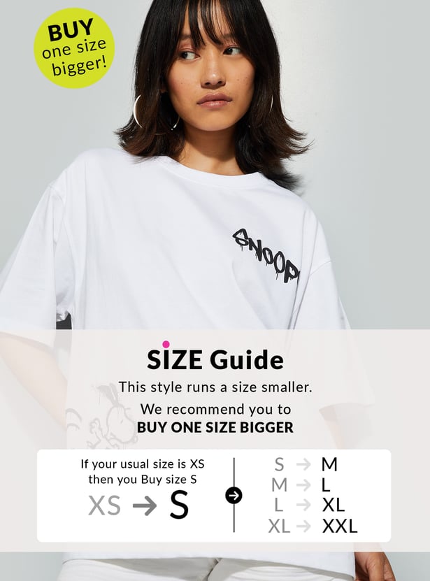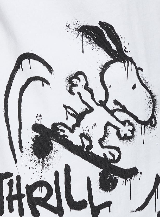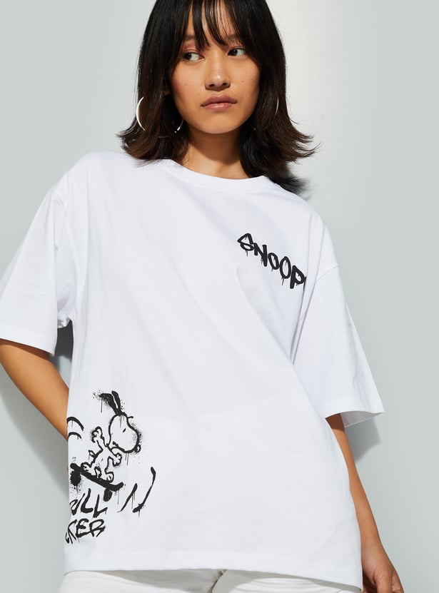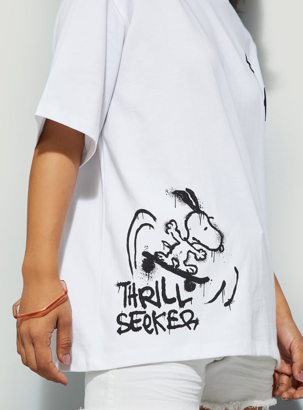 Elevate your fashion game with this t-shirt. Featuring a classic round neck and stylish half sleeves, it's the ideal backdrop for the iconic "Snoopy" print on the back.