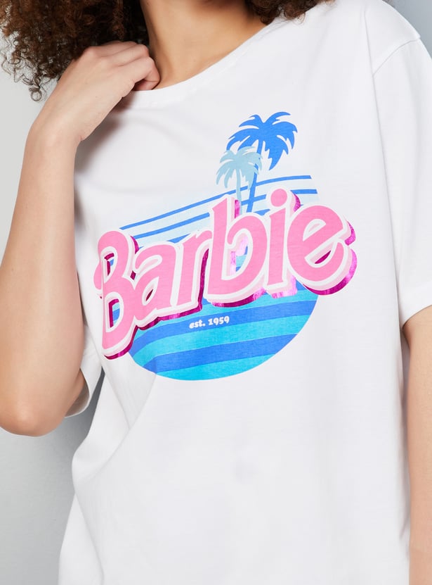 Women Boxy Fit Barbie Printed T-shirt
