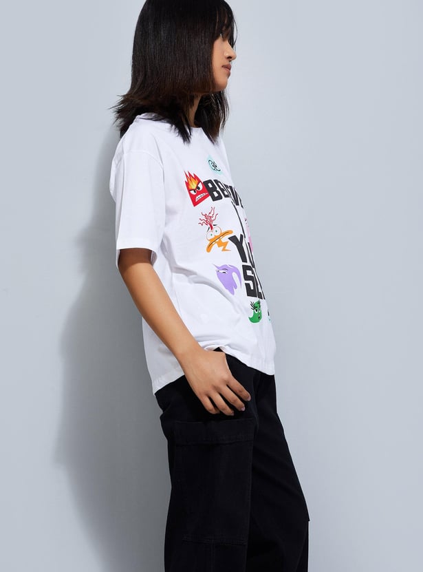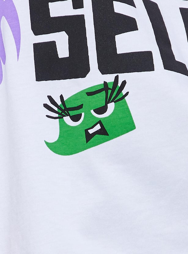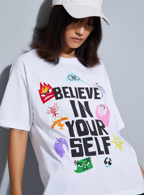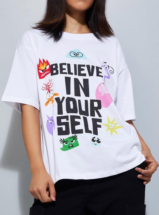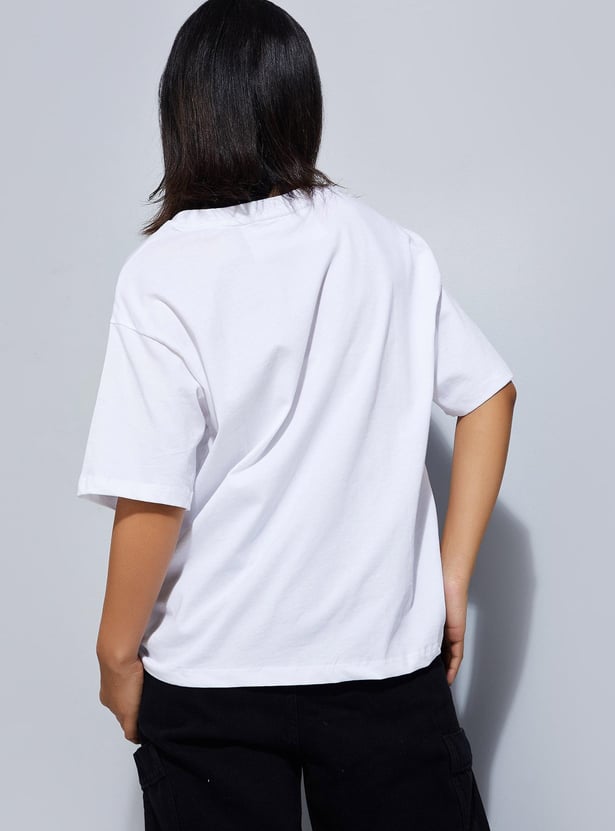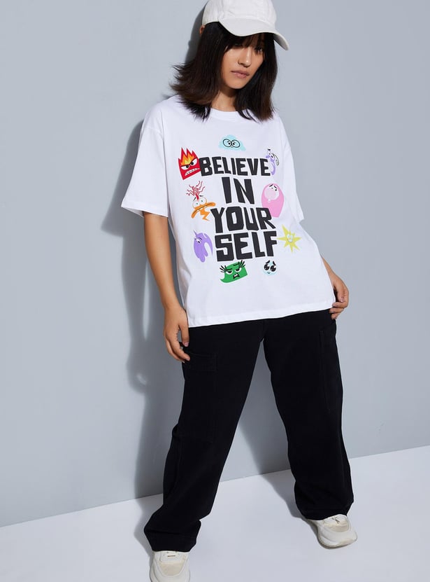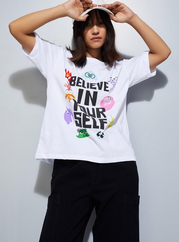 Flaunt your street style with this T-shirt. It is updated with a graphic print at the front. This tee has a round neck and half sleeves.