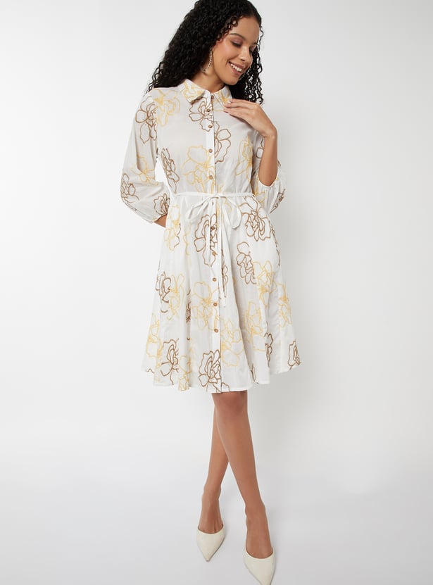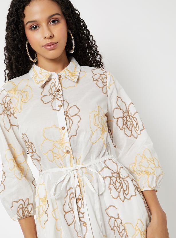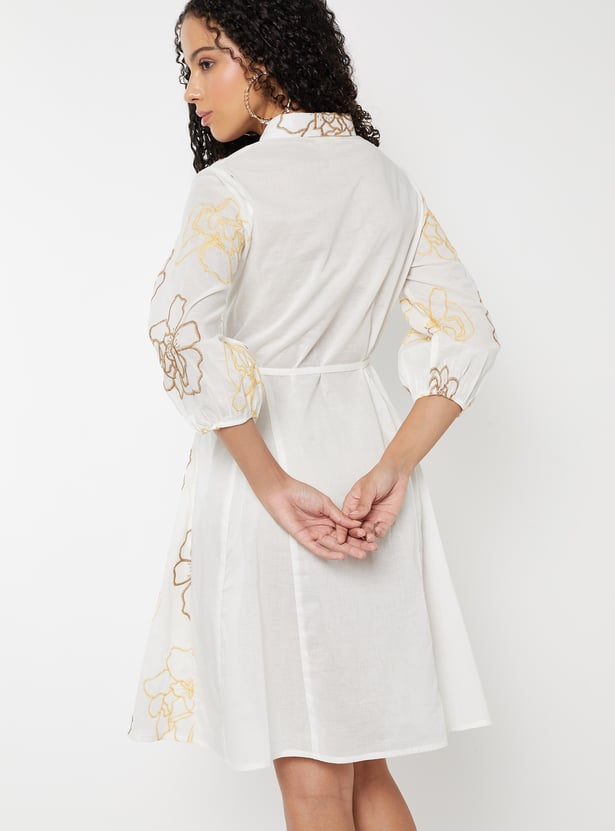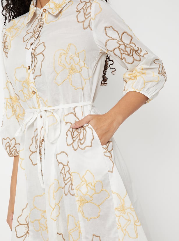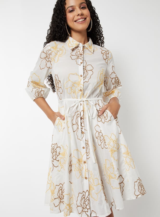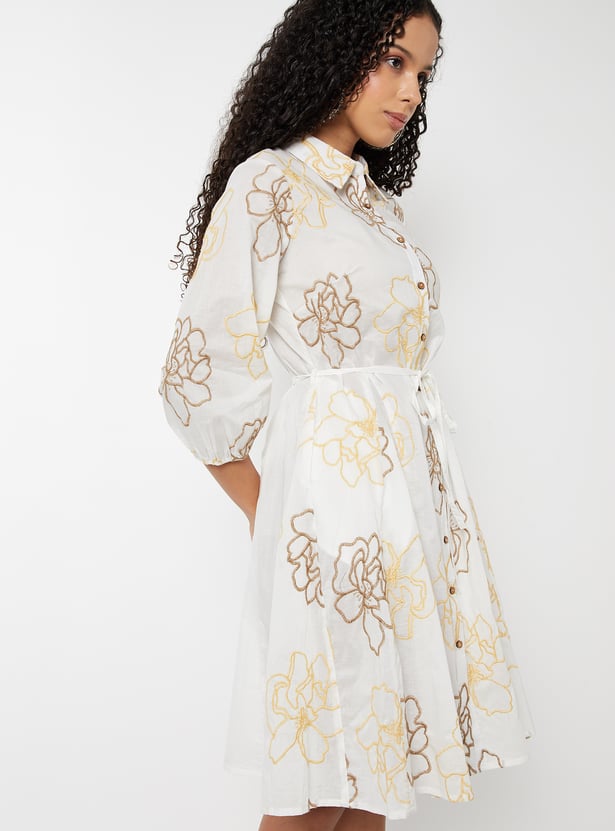 Women Embroidered A-line Shirt Dress