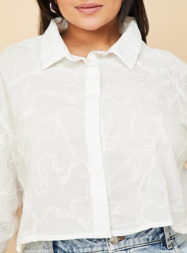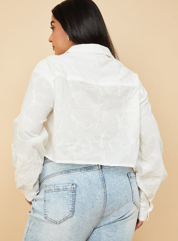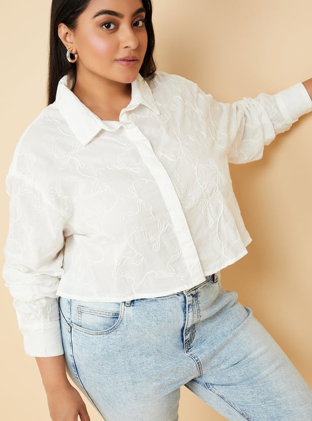 Women Embroidered Boxy Fit Crop Shirt