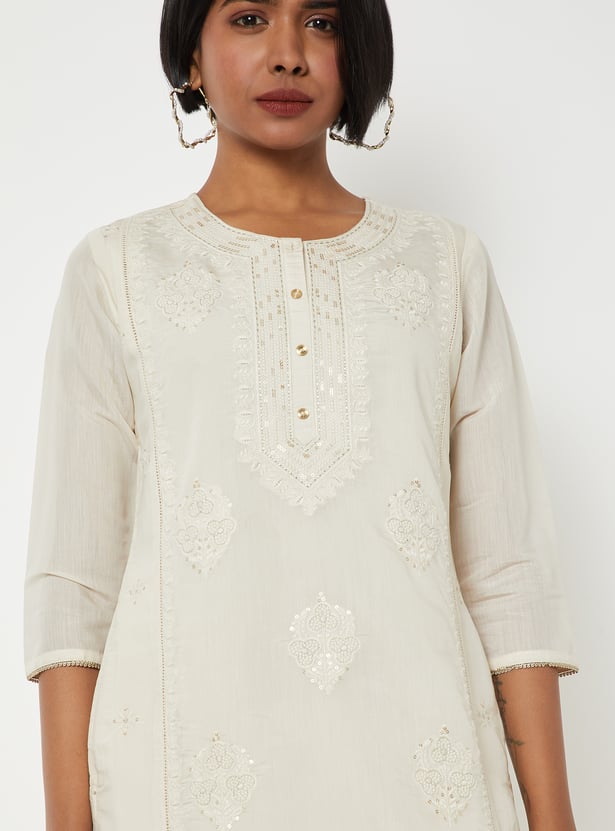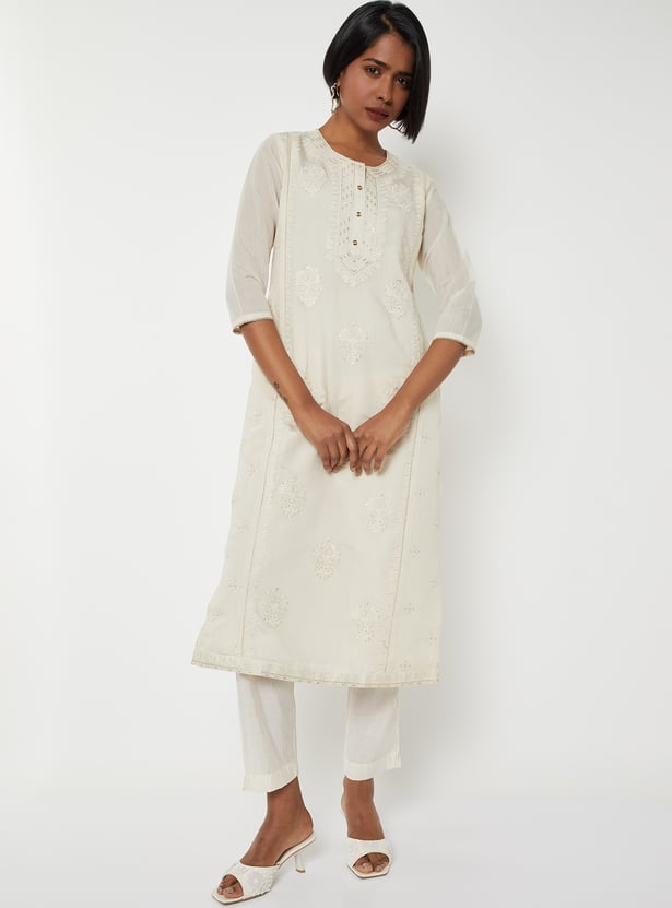 Women Embroidered Straight Kurta Set