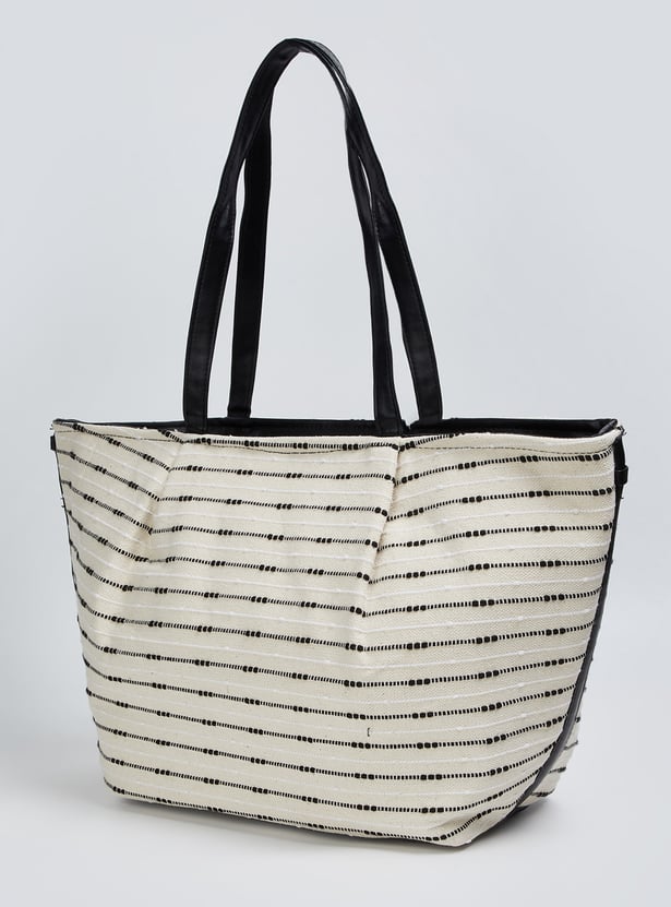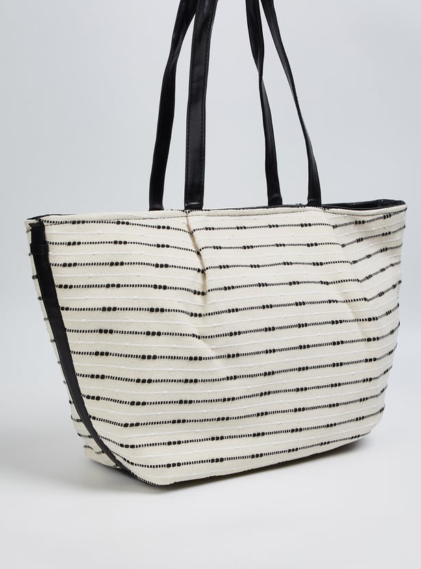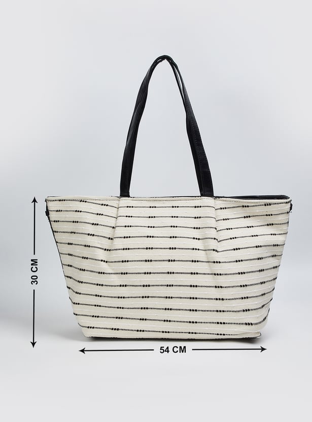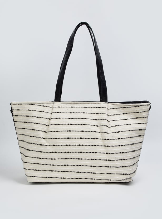 This embroidered tote bag combines everyday functionality with artisanal charm. It features intricate embroidery on the front for a stylish touch. Designed with one spacious main compartment and a secure zip closure, it offers ample room for your essentials while keeping them safe.
