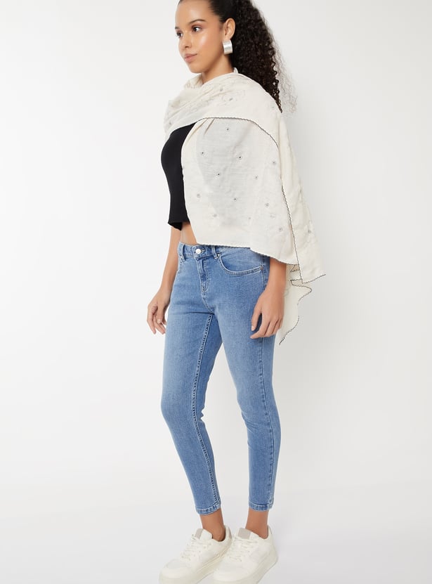 Women Floral Embroidered Scarf