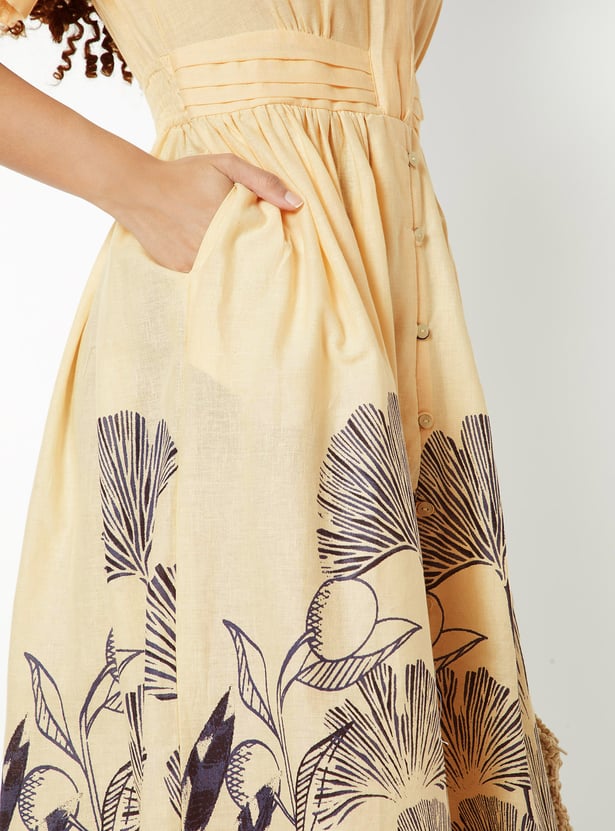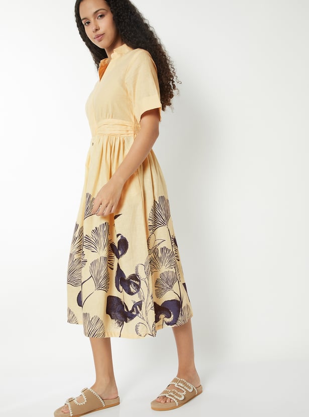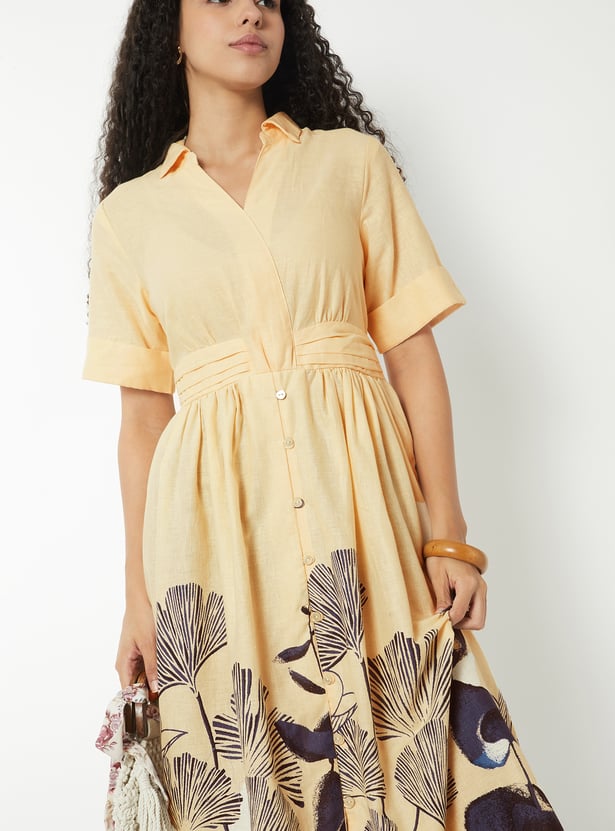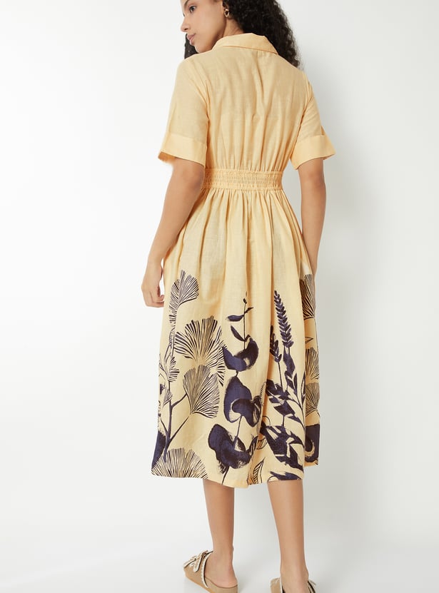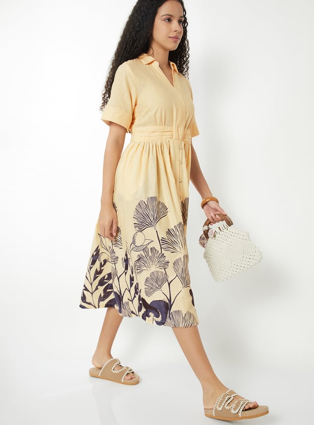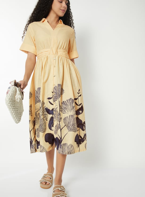 Brighten your wardrobe with this floral print shirt dress featuring a smart spread collar, and a neat button placket. Designed in a chic midi length with extended half sleeves, it offers an easy blend of structure and flow.