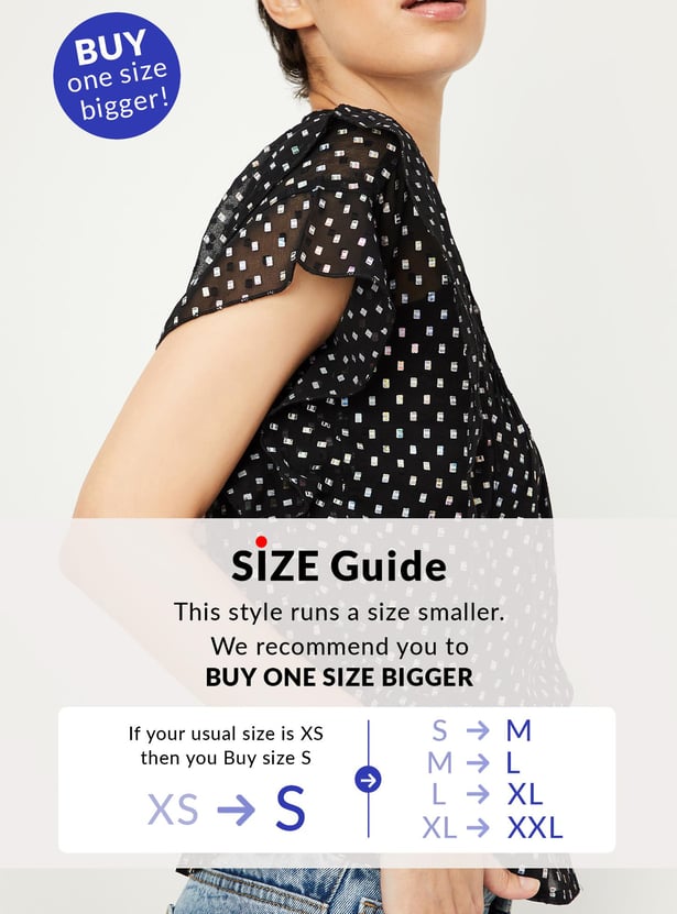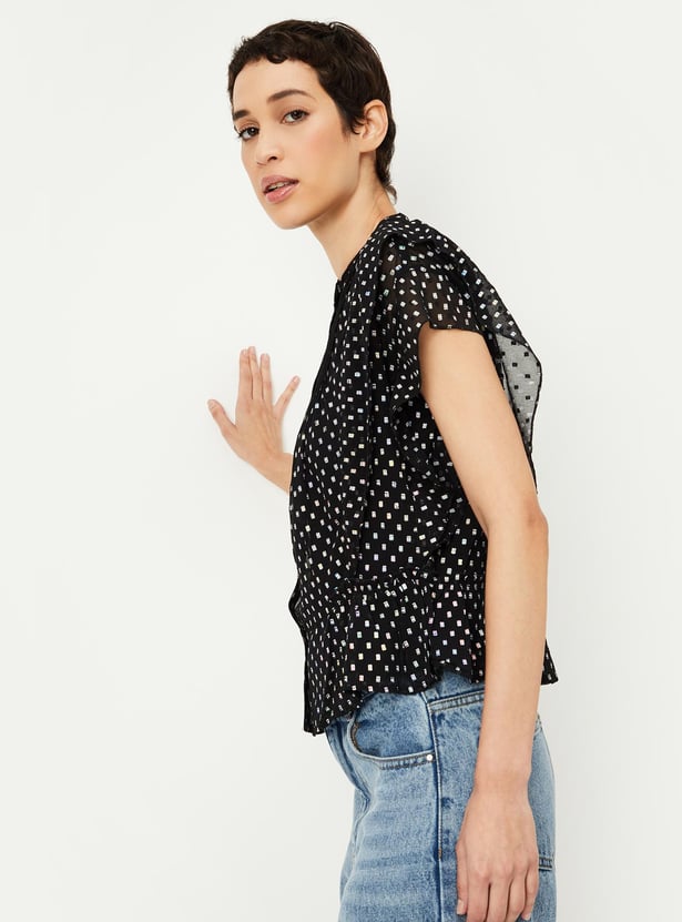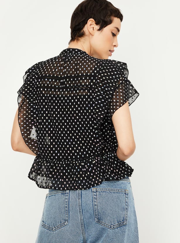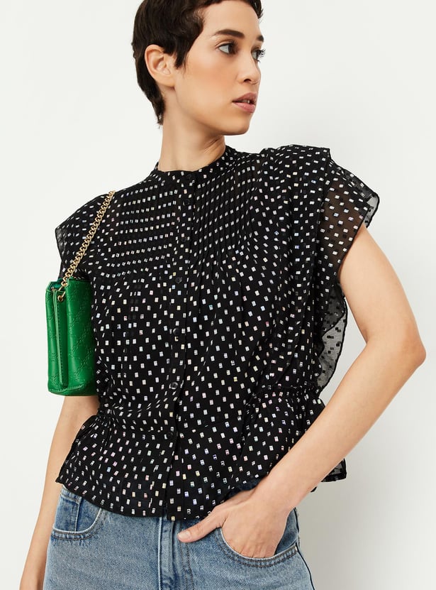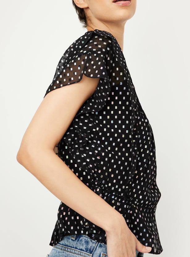 Women Holographic Printed Ruffle Top