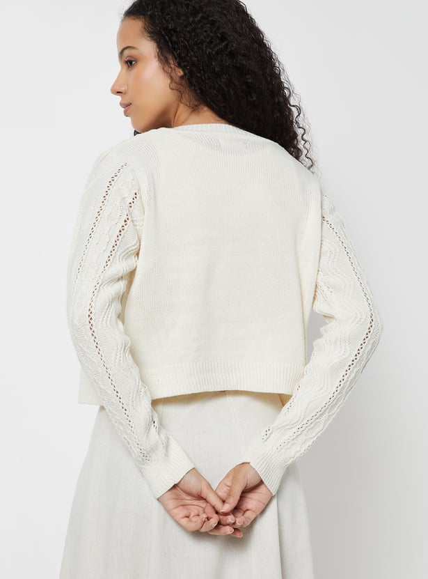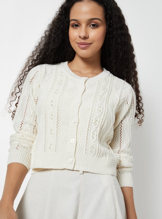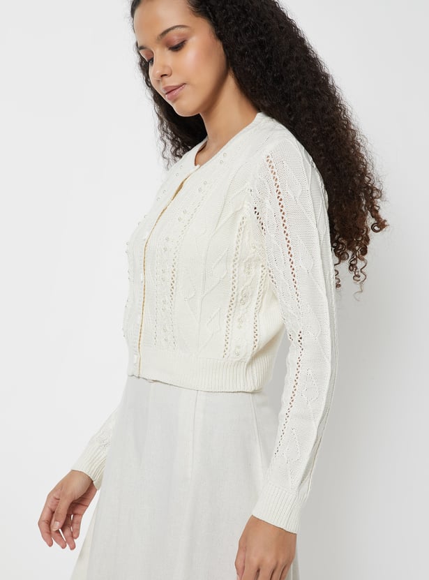 Women Jacquard Pearl Embellished Cardigan