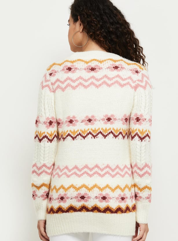 Women Knit Textured Full Sleeves Long Cardigan