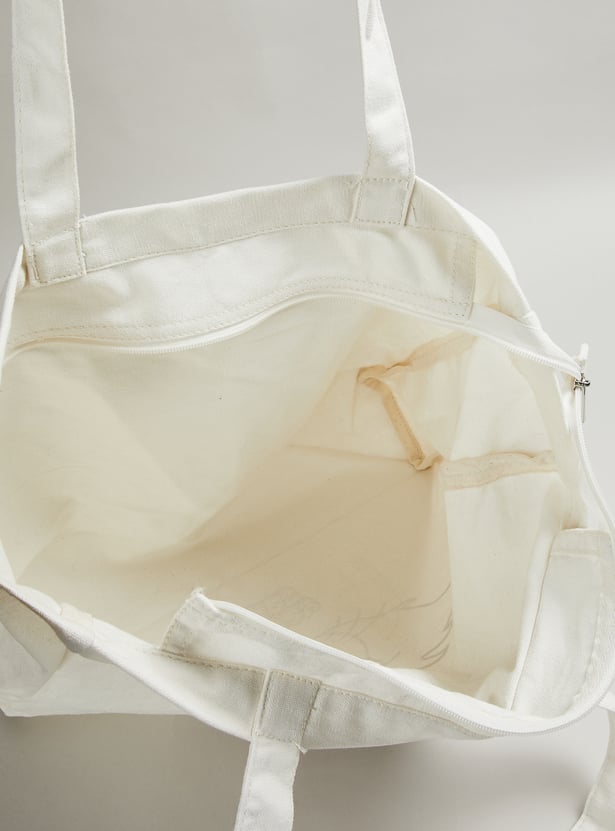Carry a smile with you everywhere with this shopper bag. Made of cotton, it features a main compartment with a zip top that offers plenty of room for your essentials, from groceries to work gear or fun day-out accessories. The Looney Tunes character print offers a classic yet fun look.
