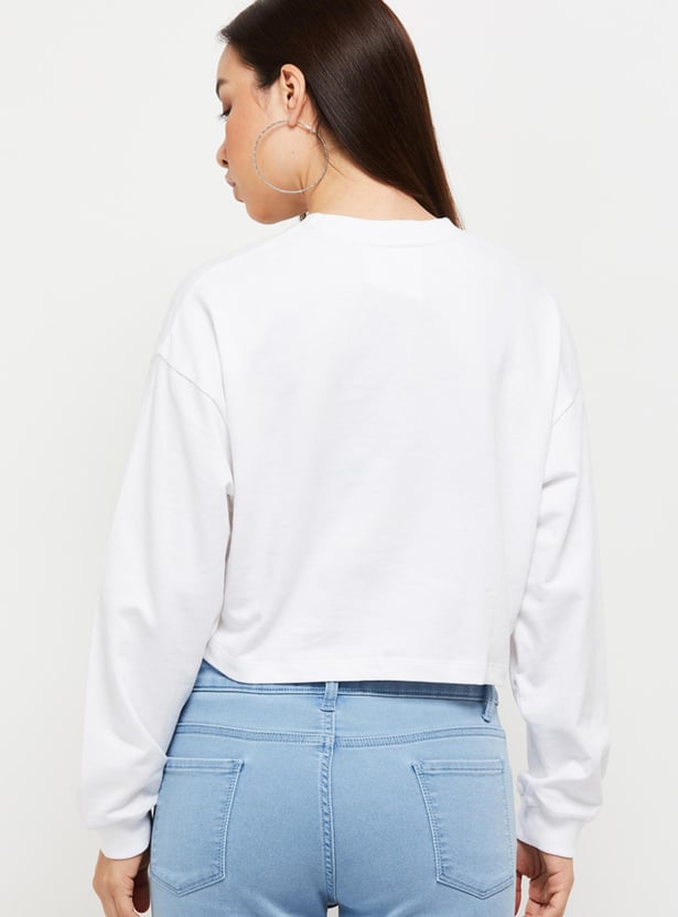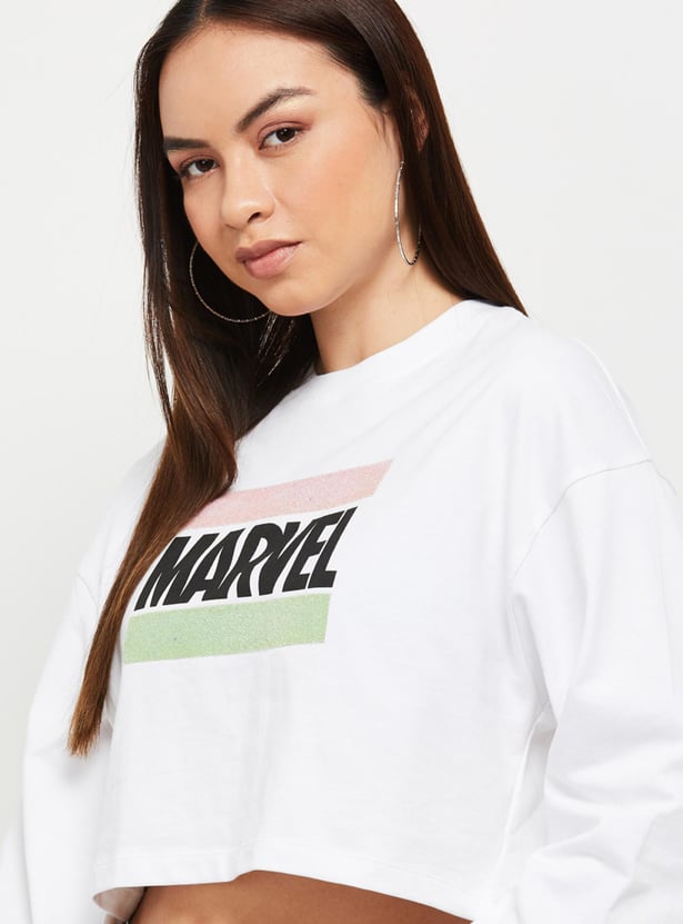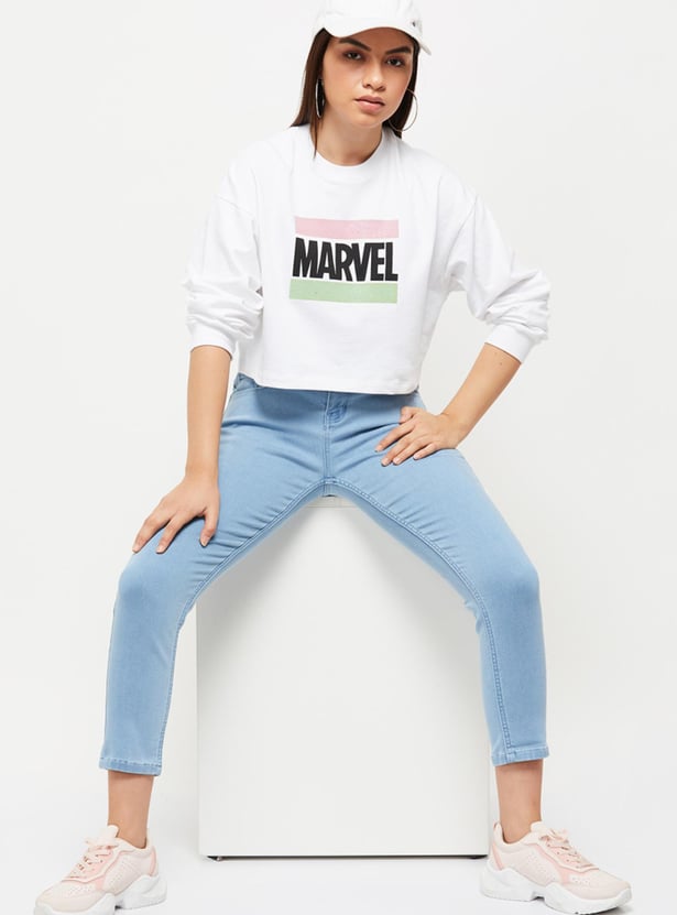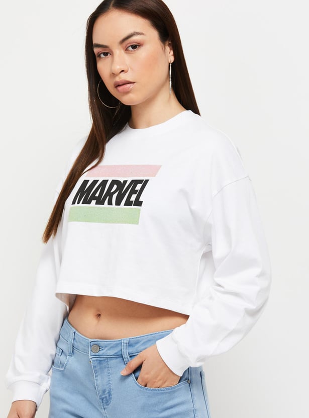 Women Marvel Printed Round Neck Crop Sweatshirt