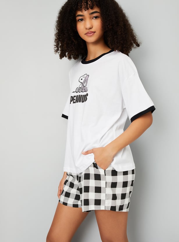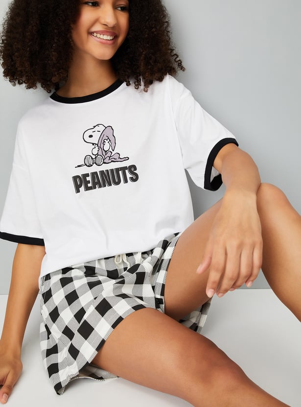 Women Peanuts Print Shorts Set
