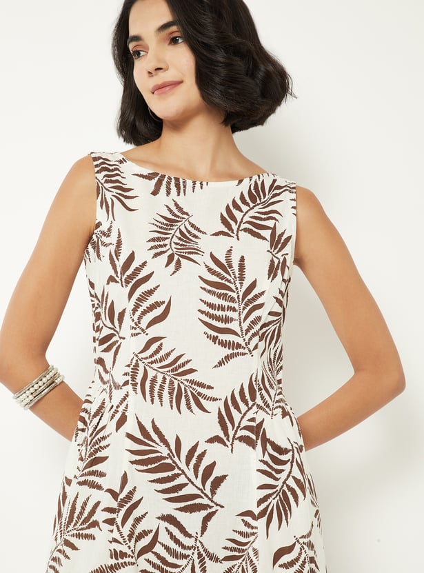 Add a graceful touch to your wardrobe with this printed A-line maxi dress. Featuring a round neck, sleeveless design, side pockets, and back zip closure, it offers a sleek silhouette with effortless elegance.
