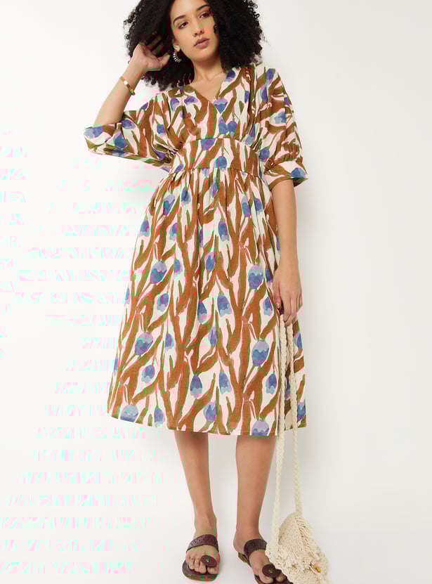 Women Printed A-line Midi Dress