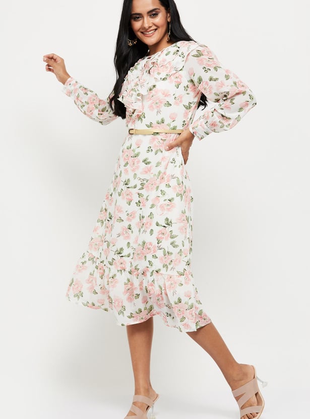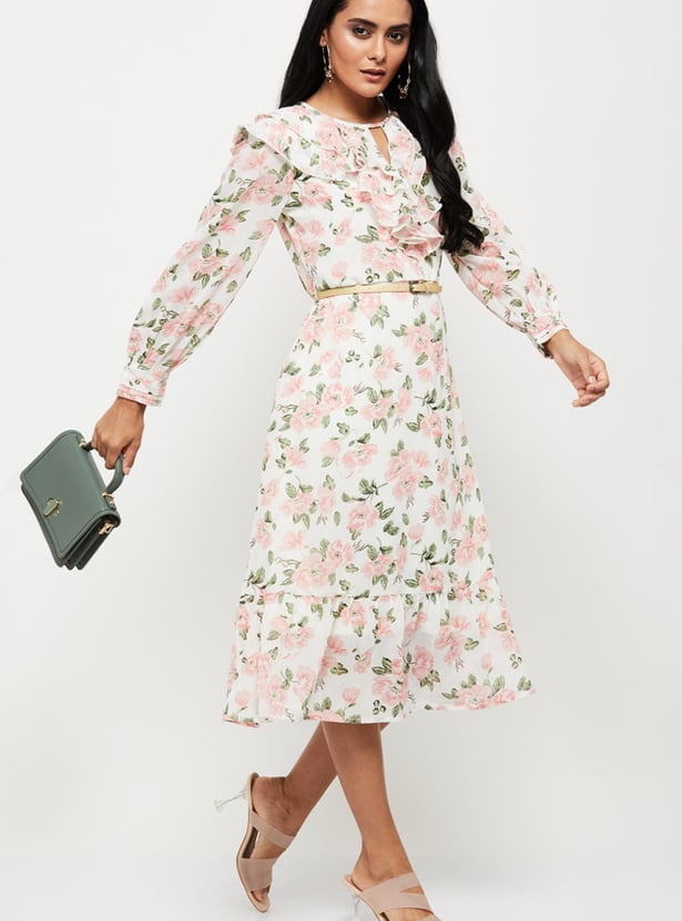 Elegant and comfortable, this printed A-line dress which has a round neck, full sleeves, and cutout detail is all you need to ensure your wardrobe is up to date.
