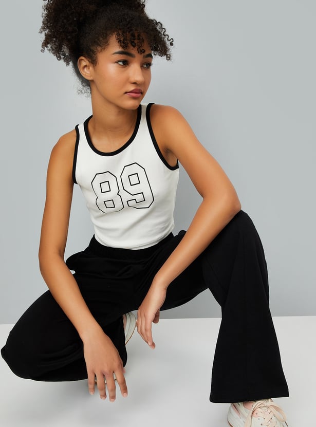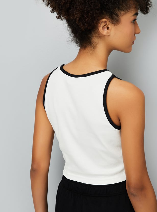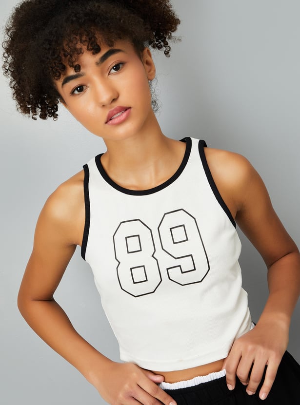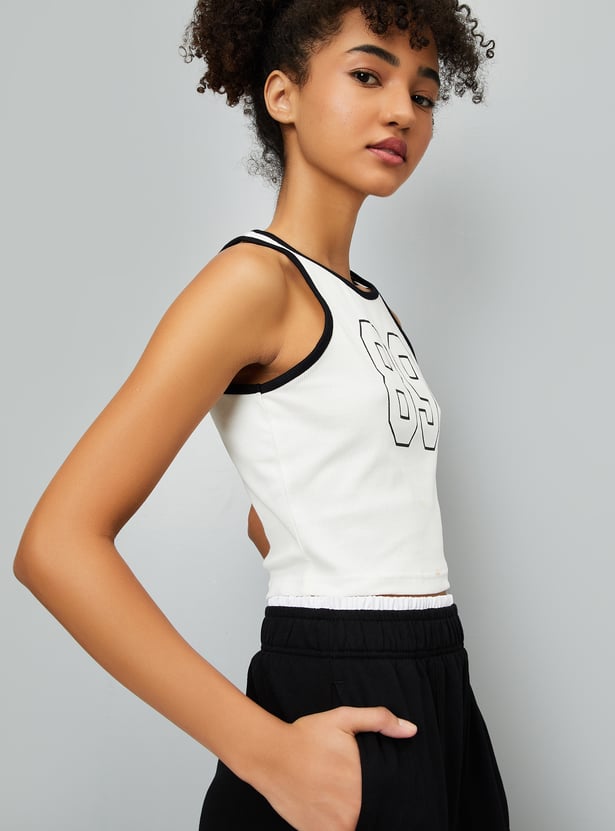This printed sports tank top combines style and functionality with its racer back design and sleeveless fit. The texture provides extra comfort and flexibility, making it perfect for both workouts and casual wear.