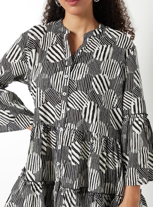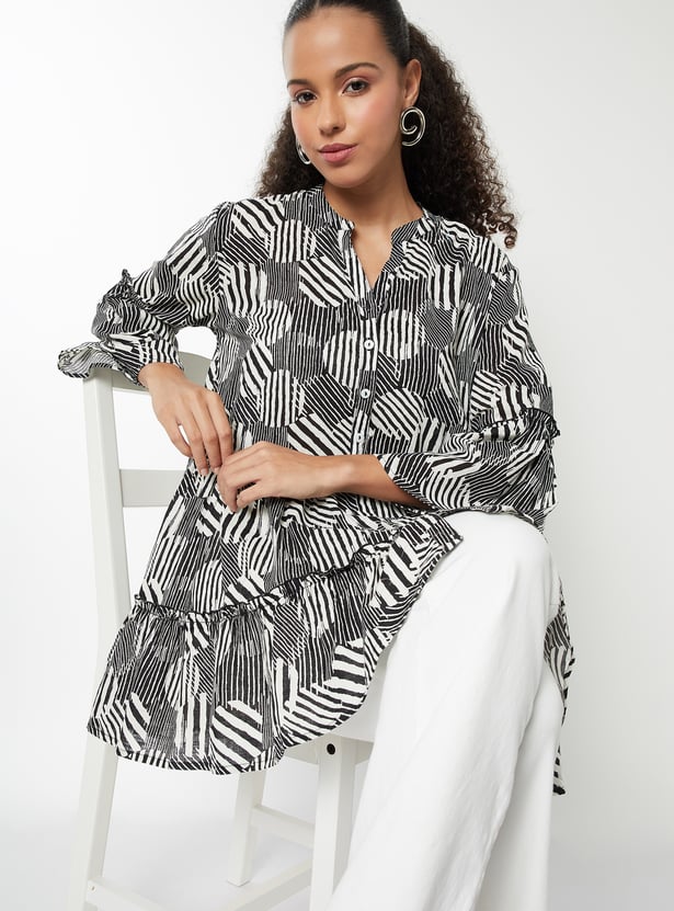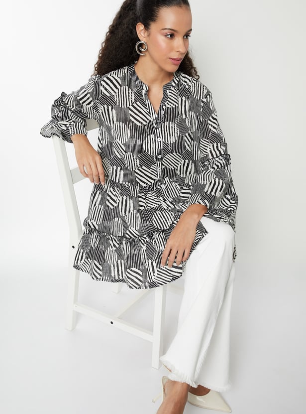 This printed tunic blends everyday comfort with effortless style. It features a button closure and full sleeves, making it a versatile piece for both casual and polished looks.