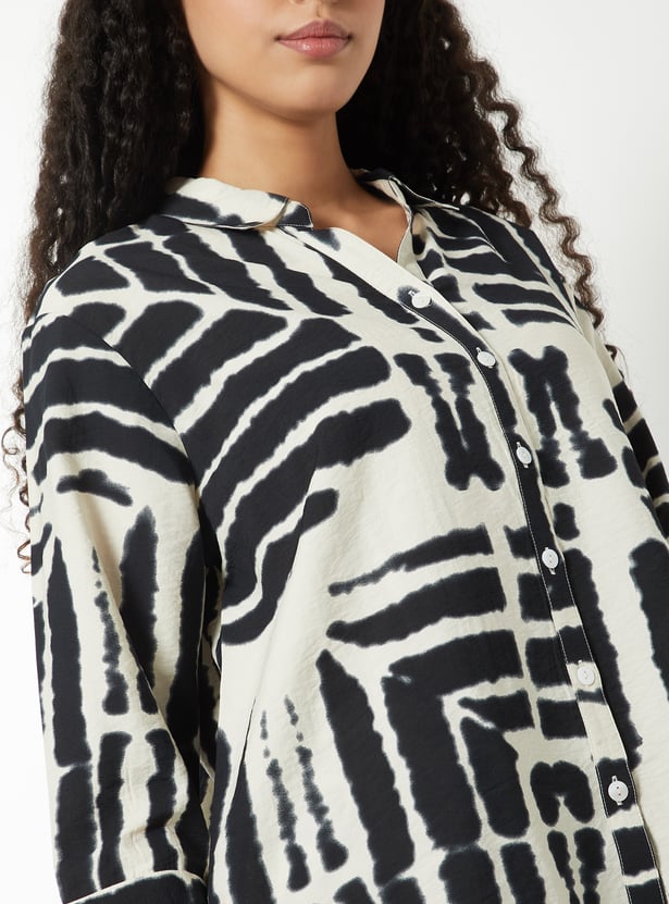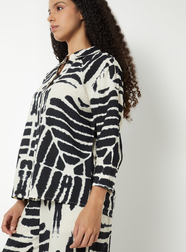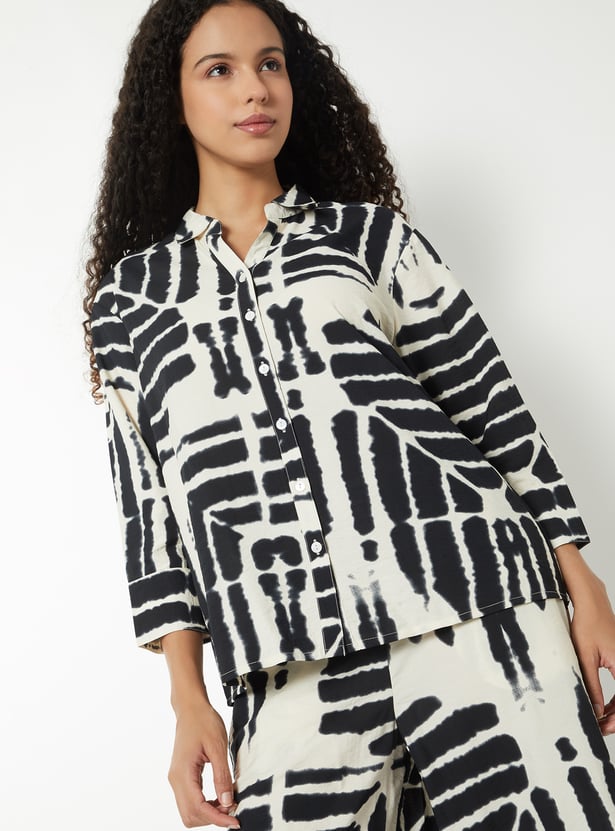 This printed tunic features a classic shirt collar, a button-down front, and 3/4th sleeves. Designed in a regular fit, it combines timeless style with everyday comfort.