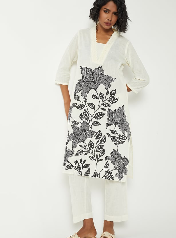 Women Printed V-neck Straight Kurta Set