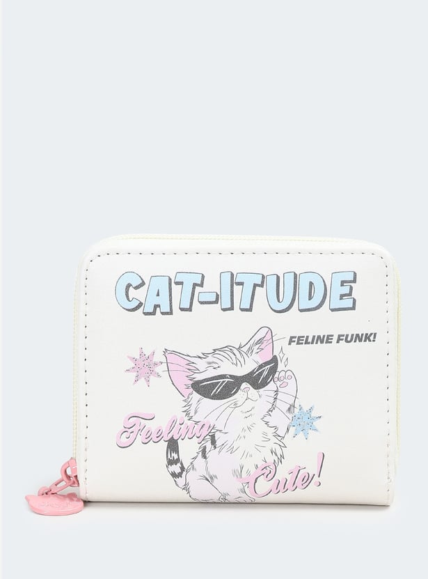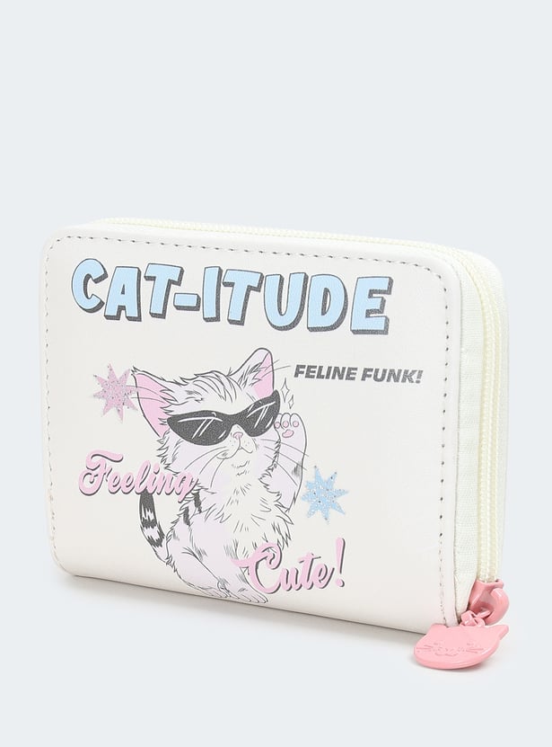 This printed zip-around wallet blends everyday functionality with a cute design. It features two main compartments to neatly organize your essentials while keeping them secure.