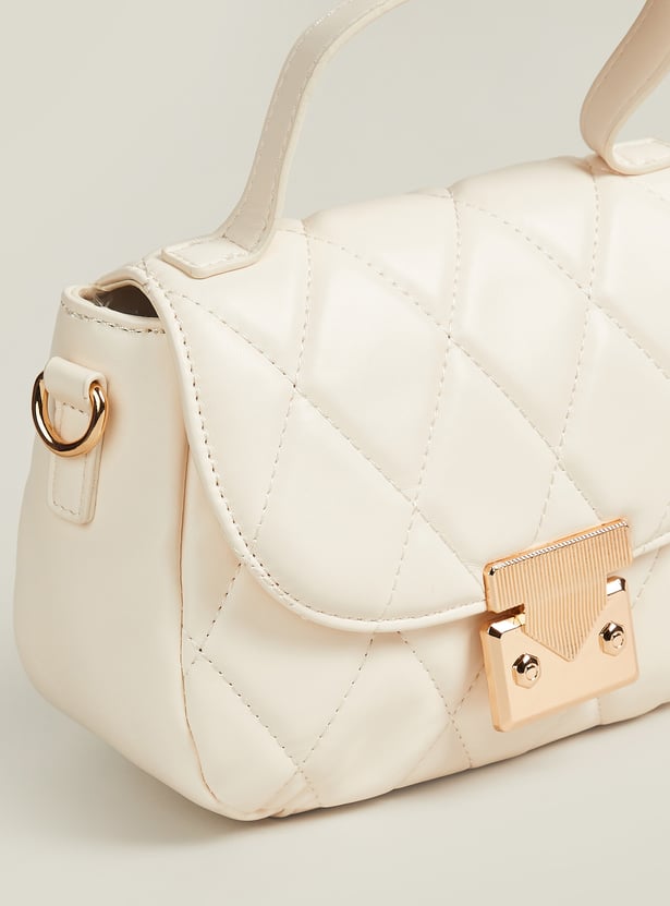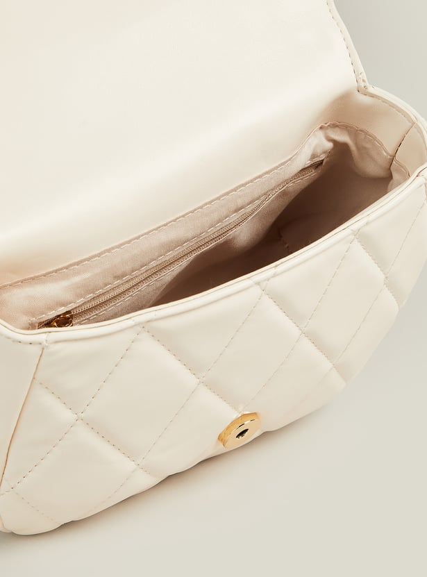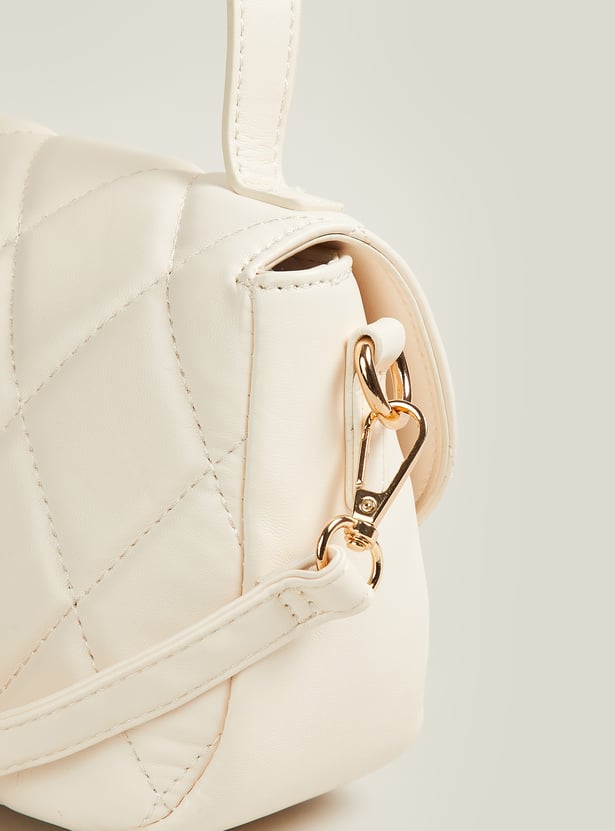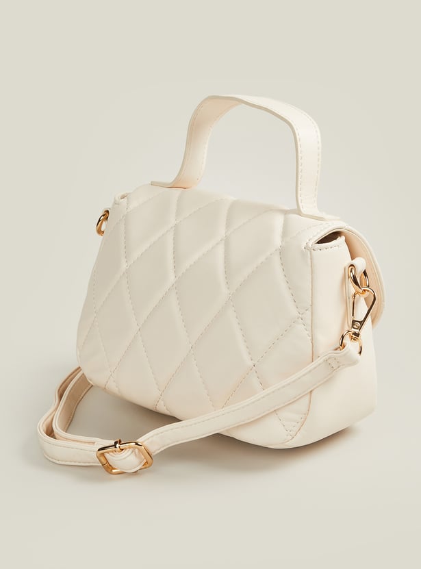 Add a touch of elegance to your look with this quilted sling bag, featuring a magnetic closure, a top loop handle, and an adjustable sling strap. Its textured design and versatile structure make it both stylish and practical for everyday use.