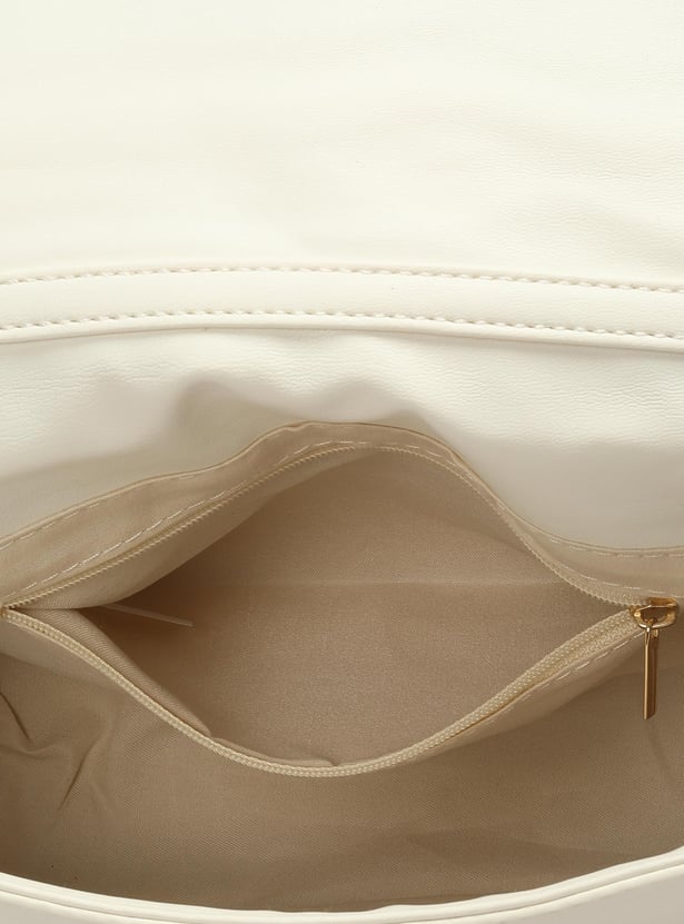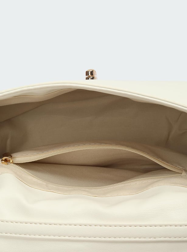 Accessorize your outfit with this sling bag updated with a quilted exterior. It is designed with a rolled handle and an adjustable strap. It comes with a flap with twist lock closure, a compact main compartment, and an interior slip pocket.