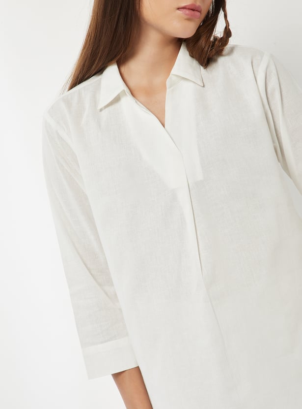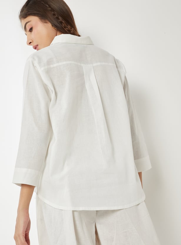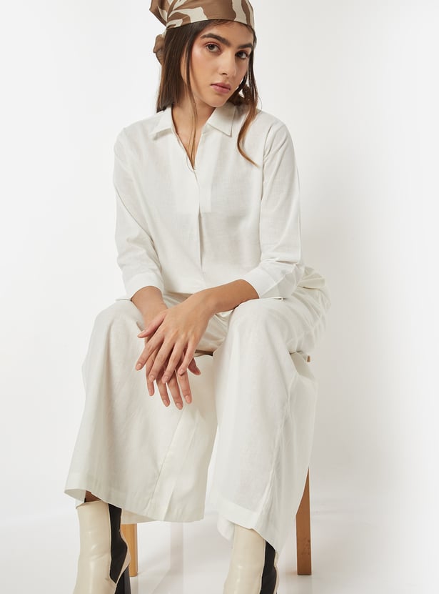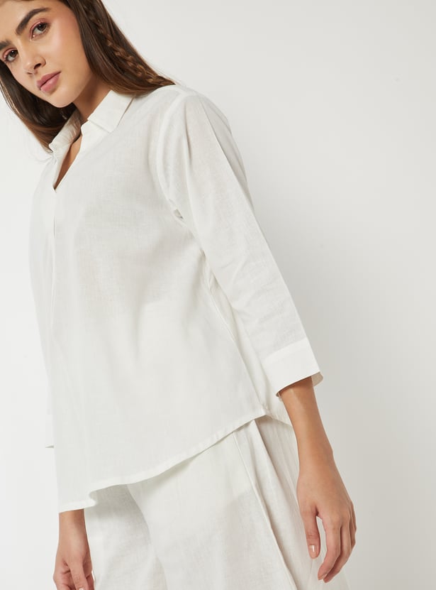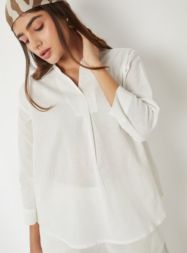 Sleek and versatile, this solid shirt is designed with a spread collar and full sleeves for a polished, timeless look. Perfect for casual or semi-formal settings.