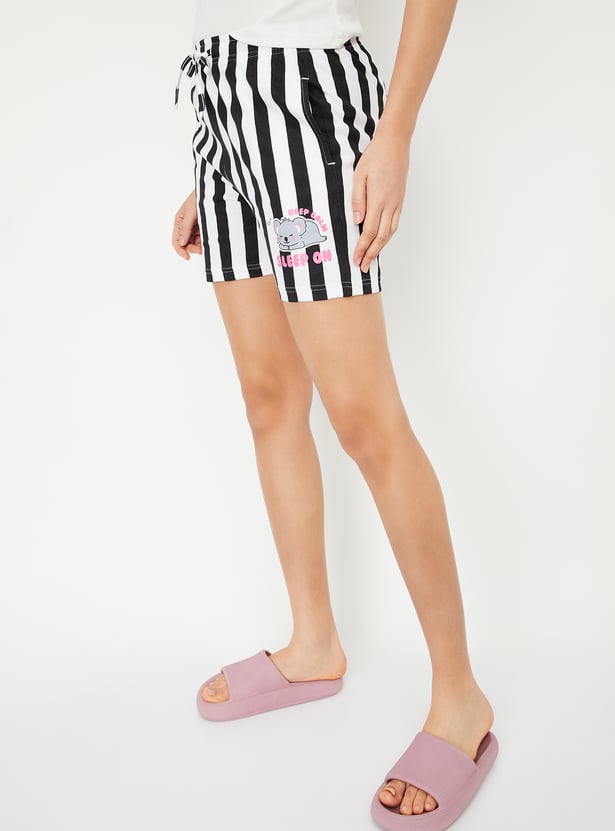 Clock a good night’s sleep in this pair of sleep shorts. It is updated with stripes all over, a drawstring waist, and pockets.
