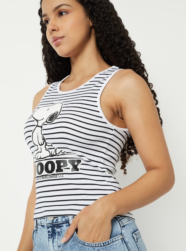 Women Striped Snoopy Tank Top