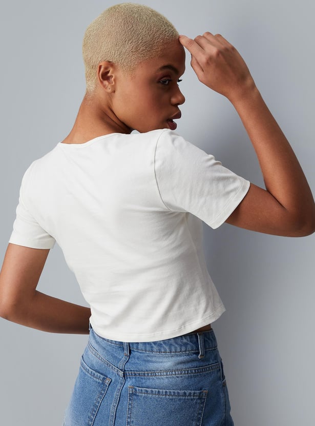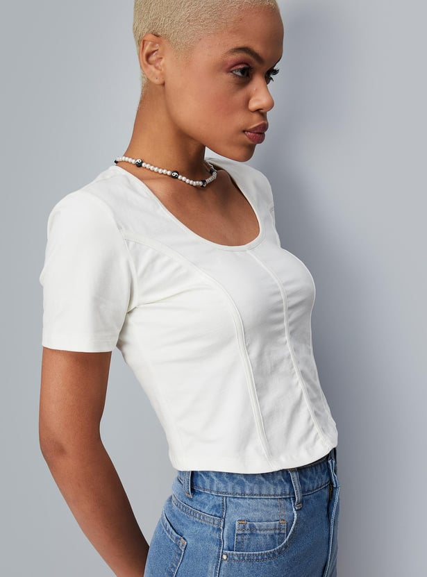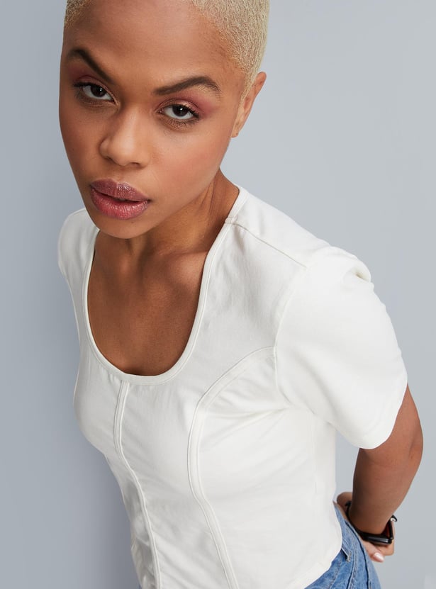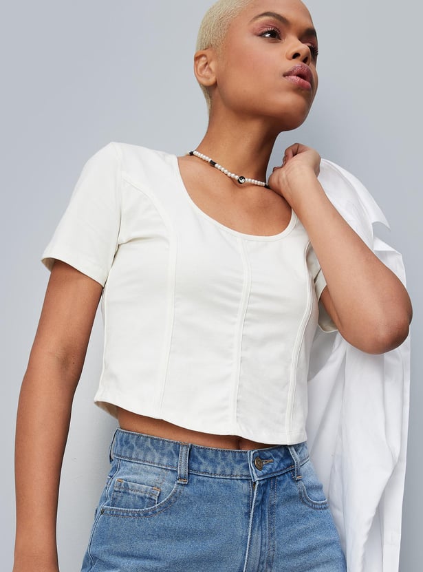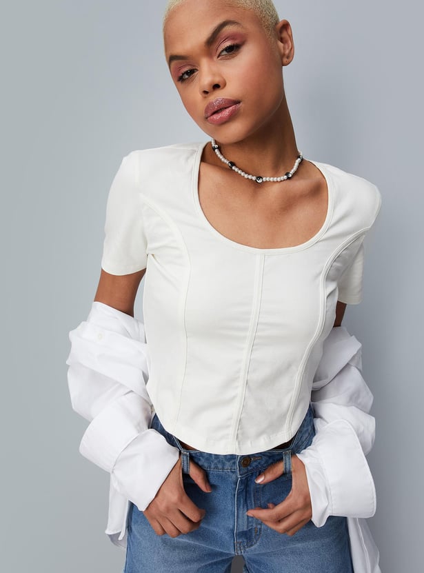 Women Textured Round Neck Corset Top