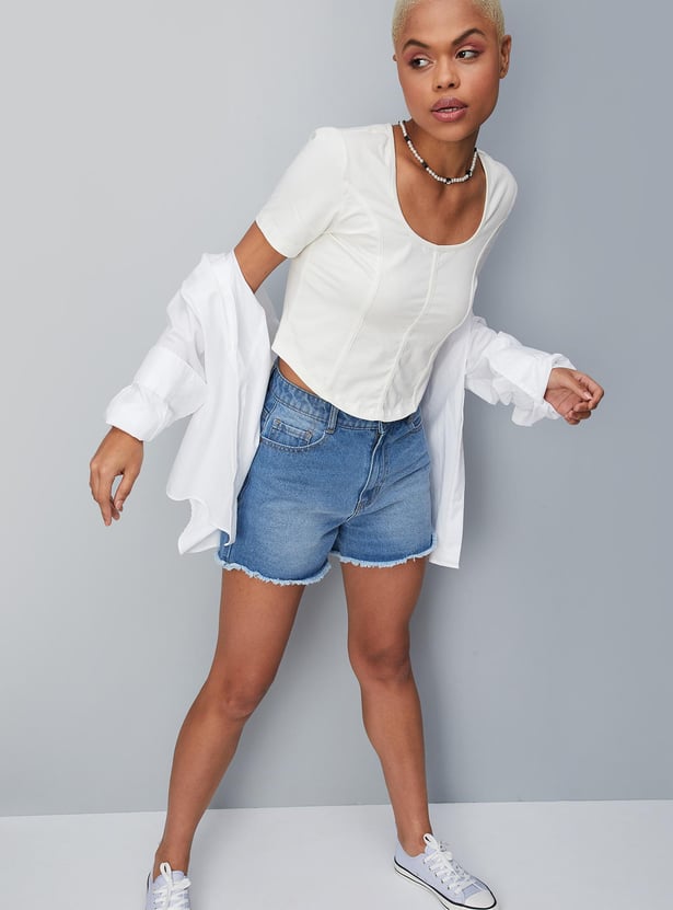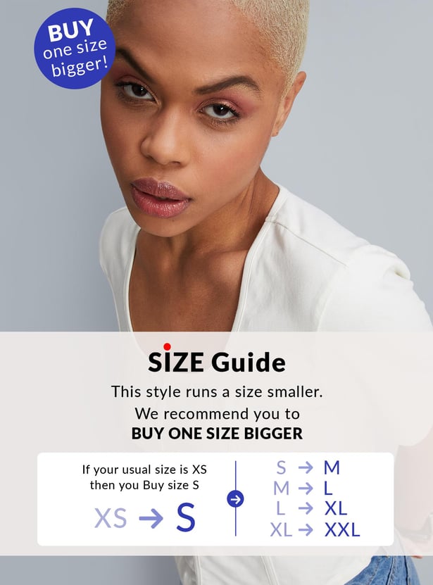 Let your style speak for yourself with this corset top. It is designed with a textured surface, round neck, and half sleeves. It calls to be styled with a pair of jeans and lace-up shoes to elevate the outfit.