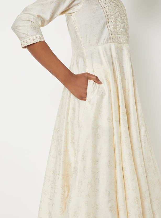 Women Yoke Embellished A-line Kurta