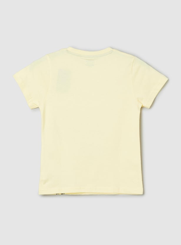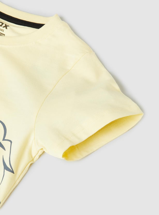 Get your little one vacation-ready with this comfortable and stylish anime print T-shirt featuring half sleeves and a crew neck.