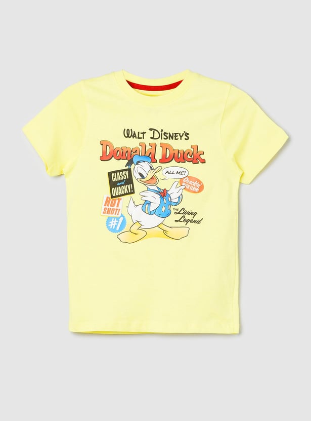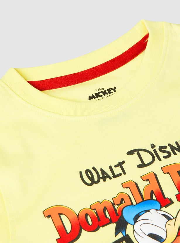 Induce comfort and style with this T-shirt accentuated by a Donald Duck print, half sleeves and a crew neck.