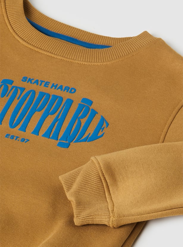 Keep your kid warm and cosy in this sweatshirt while they step out to play during the winter. It features a charming print, a crew neckline, full sleeves, and a ribbed hem, making it stylish and snug for chilly days.