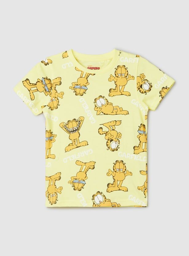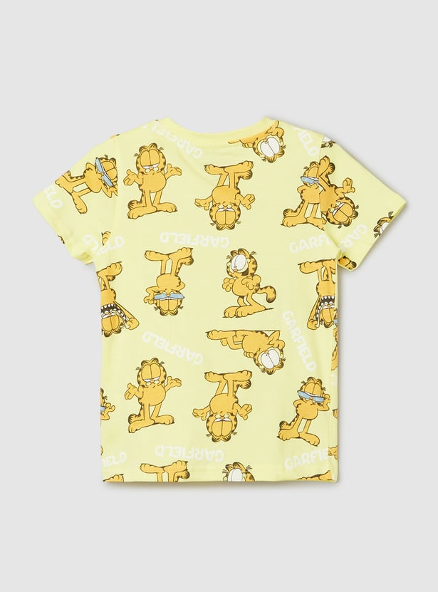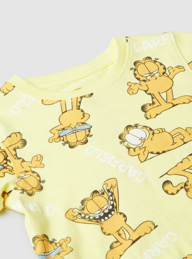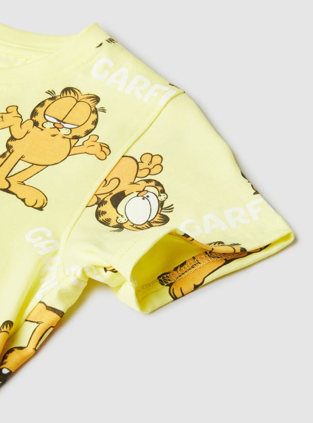 Add a playful touch to your little one's everyday wardrobe with this T-shirt. Featuring everyone's favourite lasagna-loving cat prints, this tee has a crew neck and short sleeves.