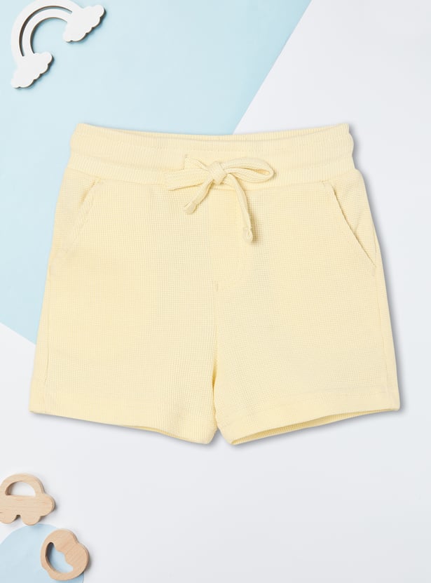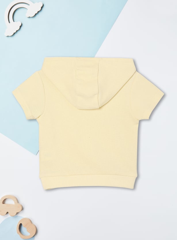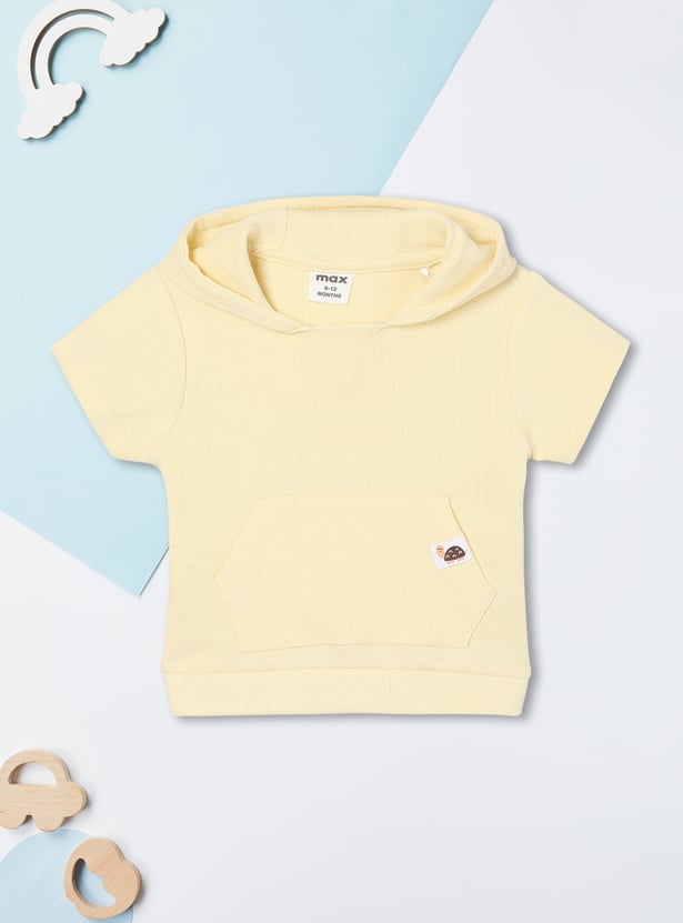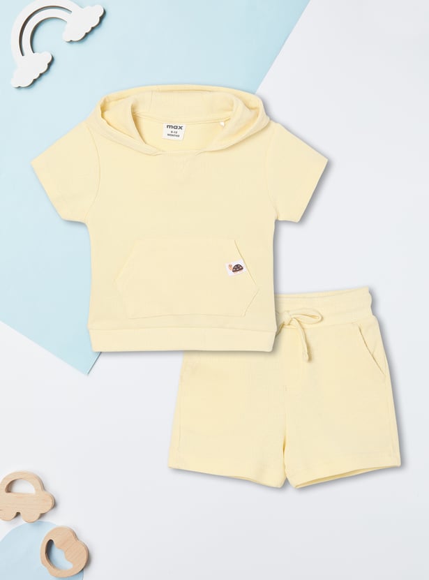 Elevate your casual style with this t-shirt and shorts set. The hooded, half sleeves t-shirt features a kangaroo pocket for added functionality, while the drawstring closure shorts with insert pockets ensure a comfortable fit.