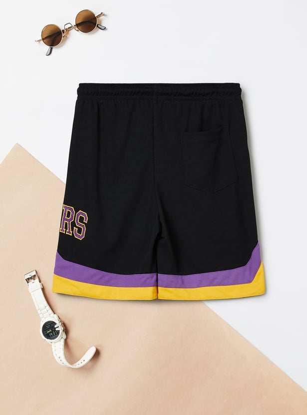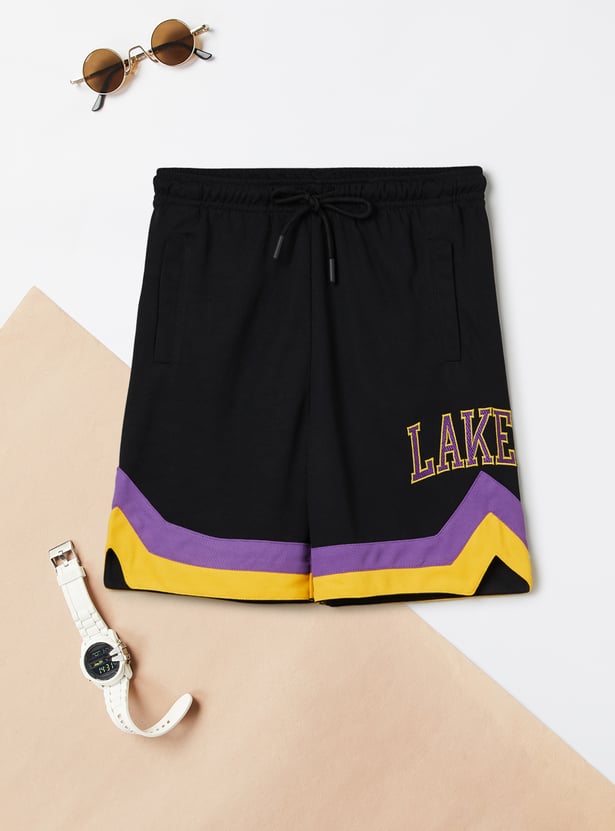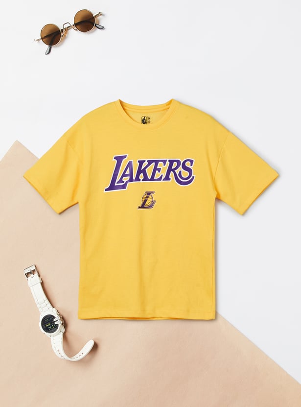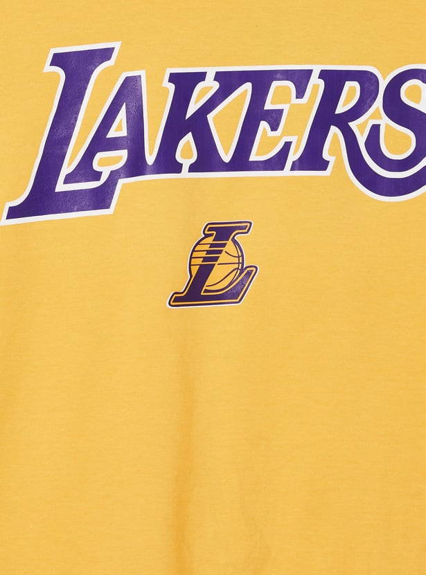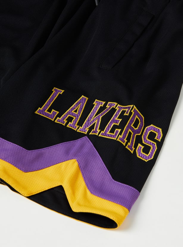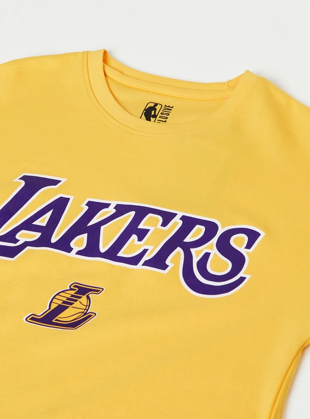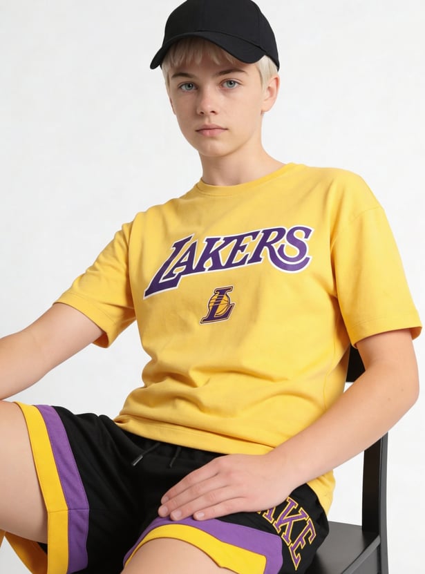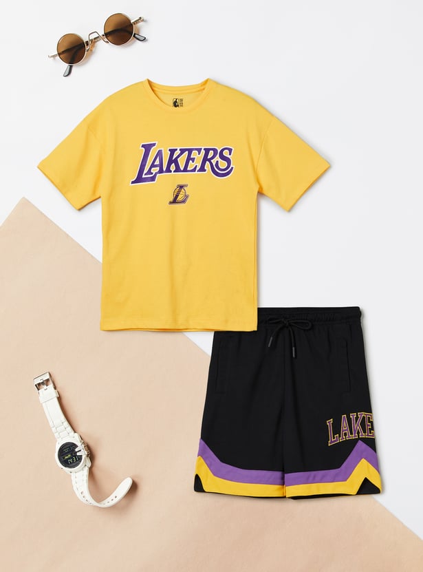 This shorts set consists of a Lakers-print T-shirt with a crew neck and short sleeves. It is complemented by matching elasticated shorts.