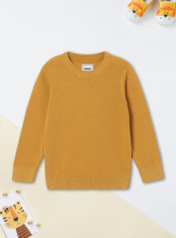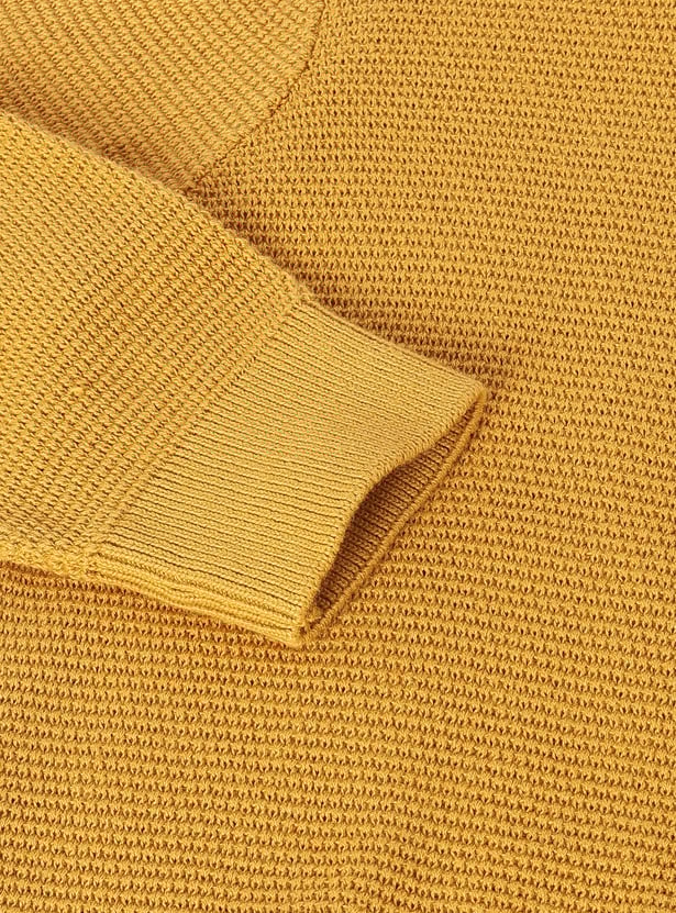 Cosy up for the season in this sweater. It features a knit construction with a crew neck, half sleeves, and ribbed trim.