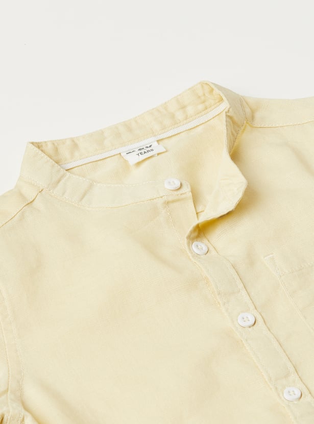 Upgrade his casual wardrobe with this oversized solid shirt, featuring a sleek band collar and half sleeves for a relaxed yet polished look. The button placket adds a refined touch, while the patch pocket enhances functionality—perfect for everyday wear or special outings.