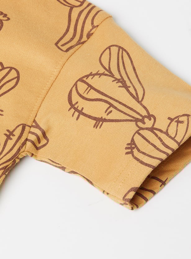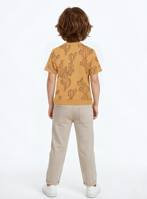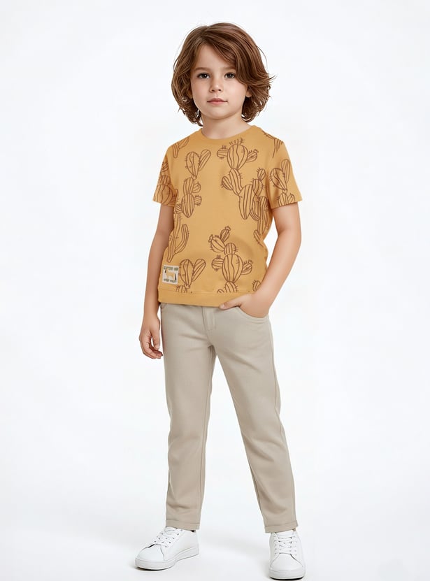 A classic with a twist—this printed crew neck tee is your everyday essential with personality. Featuring half sleeves and a relaxed fit, it’s made for easy styling and all-day comfort