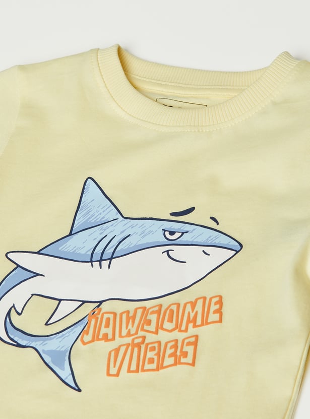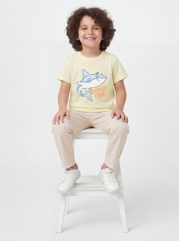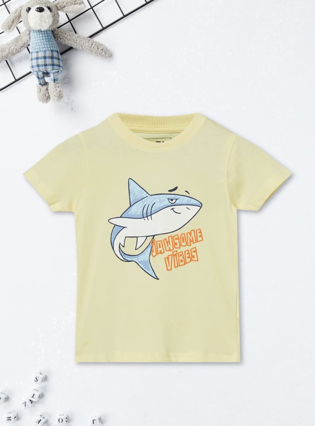 Make everyday dressing more fun with this printed T-shirt, designed with a classic crew neck and comfortable half sleeves for easy wear. Featuring a playful whale print that adds a cheerful, ocean-inspired touch, it brings character to casual looks.