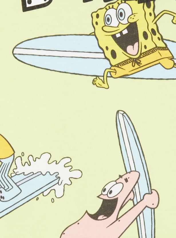 Bring playful energy to your wardrobe with this SpongeBob print T-shirt, featuring a classic crew neck and half sleeves.