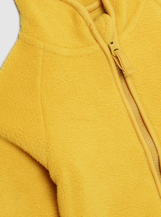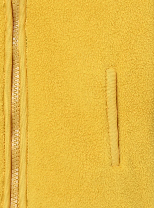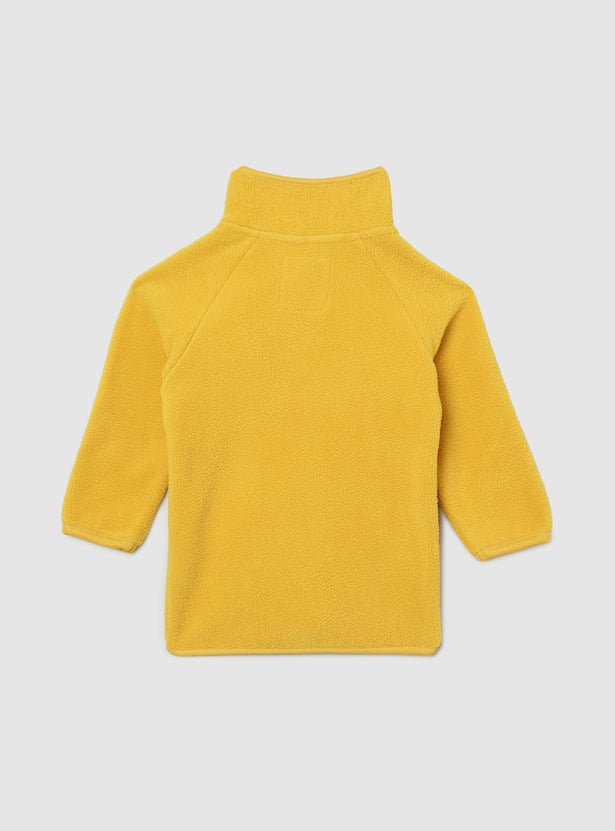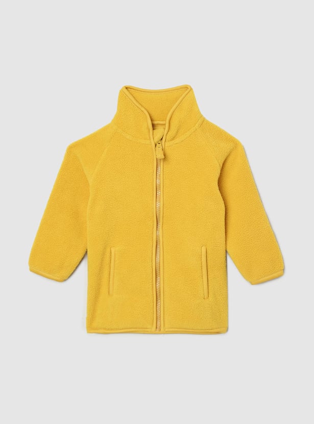 An ideal pick for your little one this winter season, this winter jacket is designed with a textured surface, high neckline, zip closure, pockets, and full sleeves.