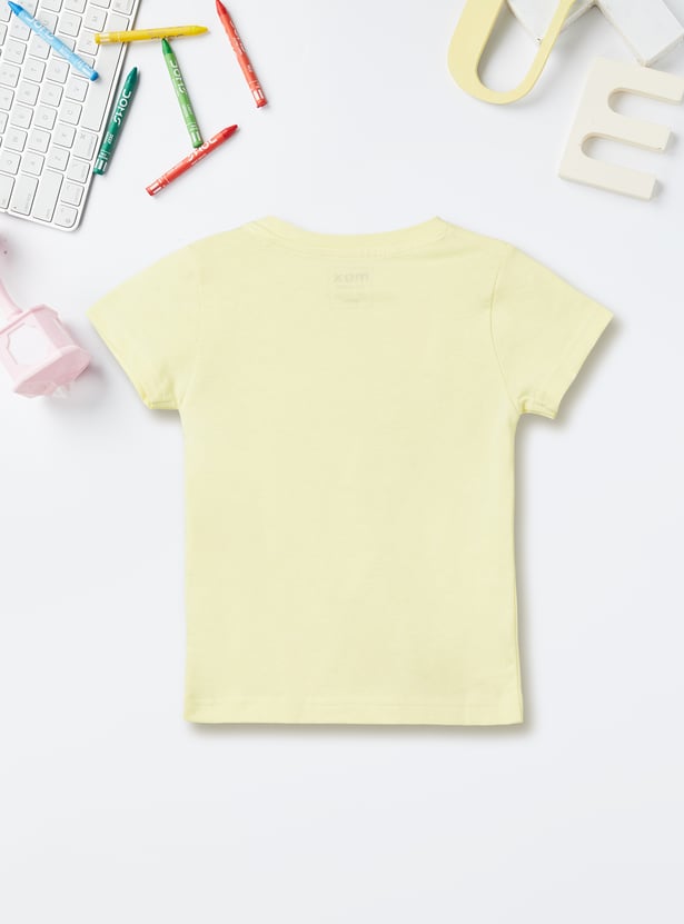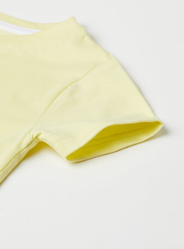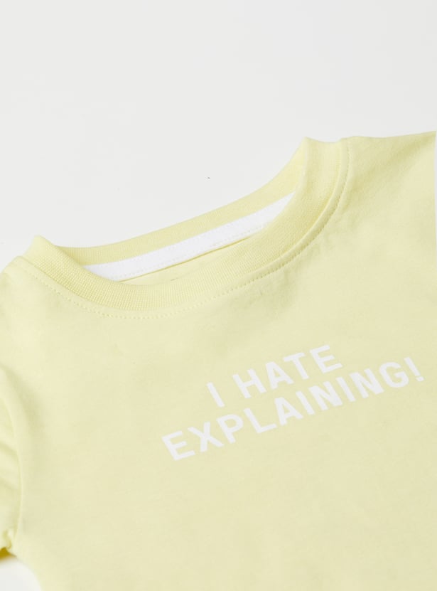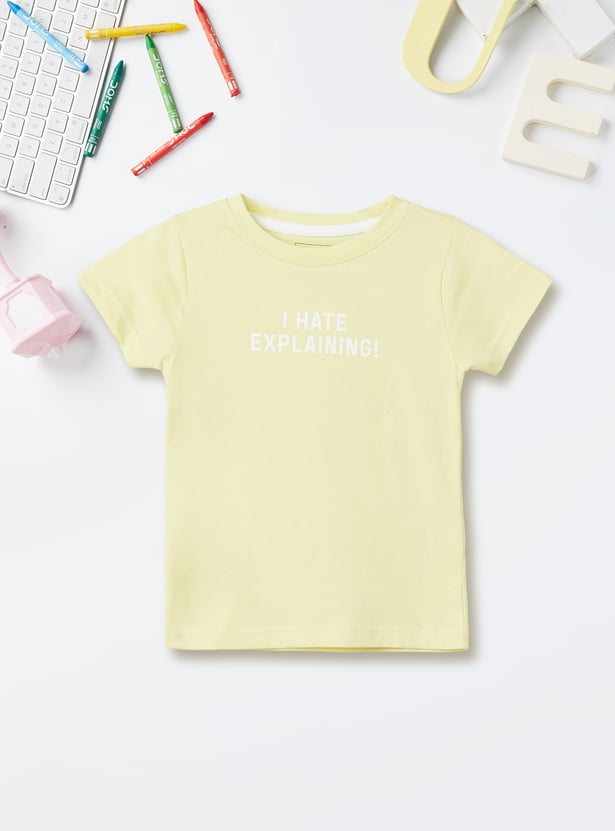A perfect addition to your kid's summer collection is this T-shirt, featuring a typography print that adds a stylish flair. It boasts a classic crew neck and short sleeves, ensuring comfort and coolness during the warmer months.